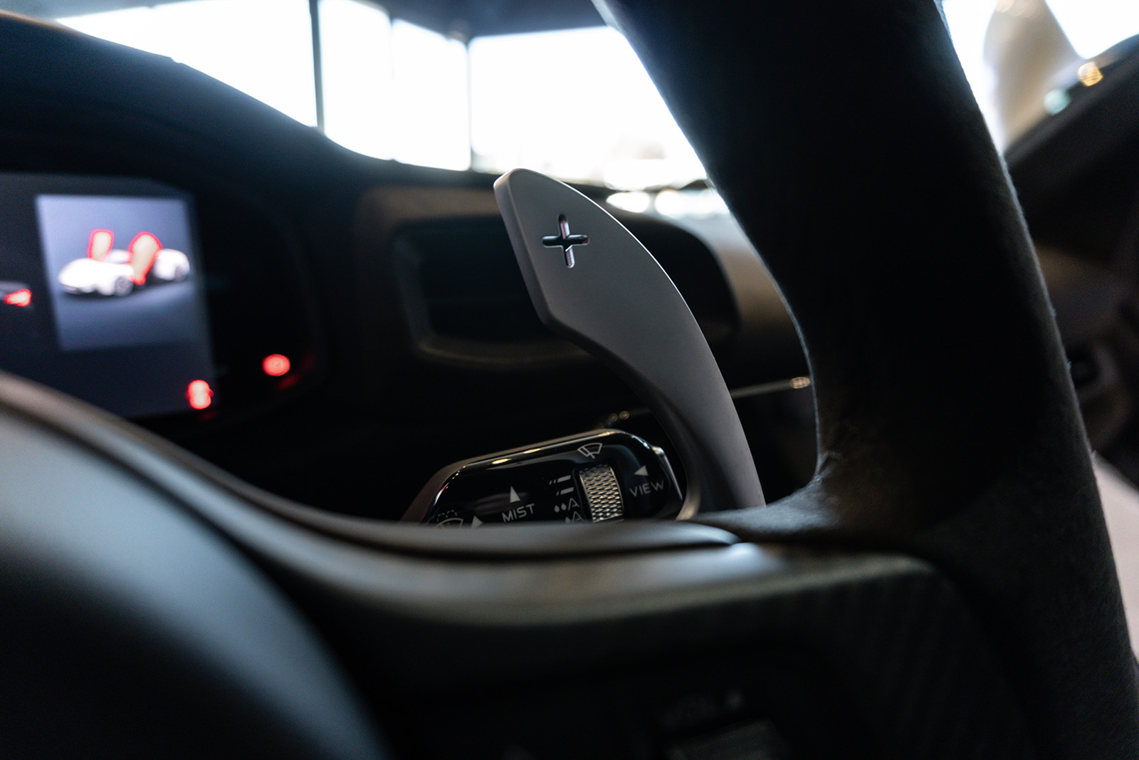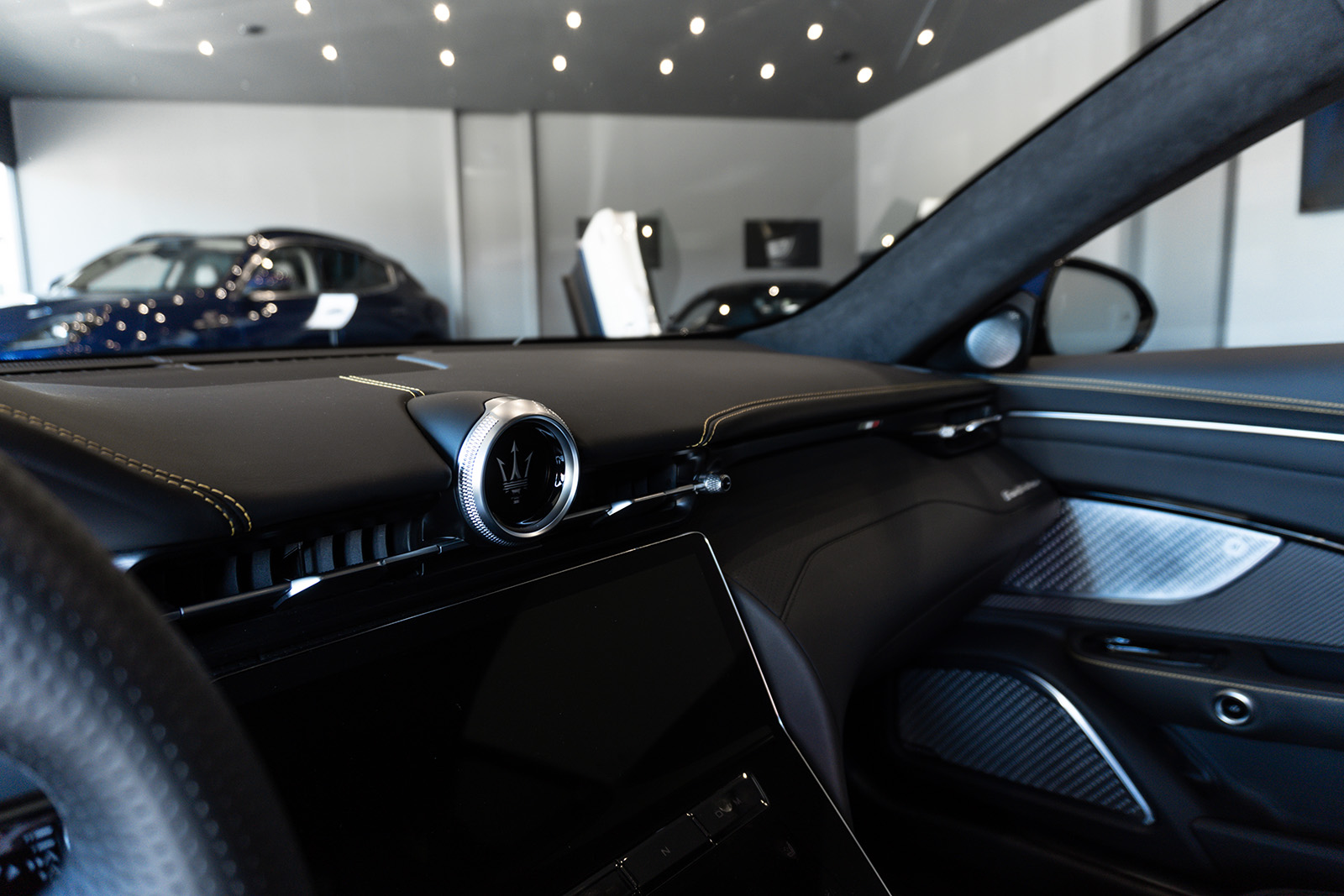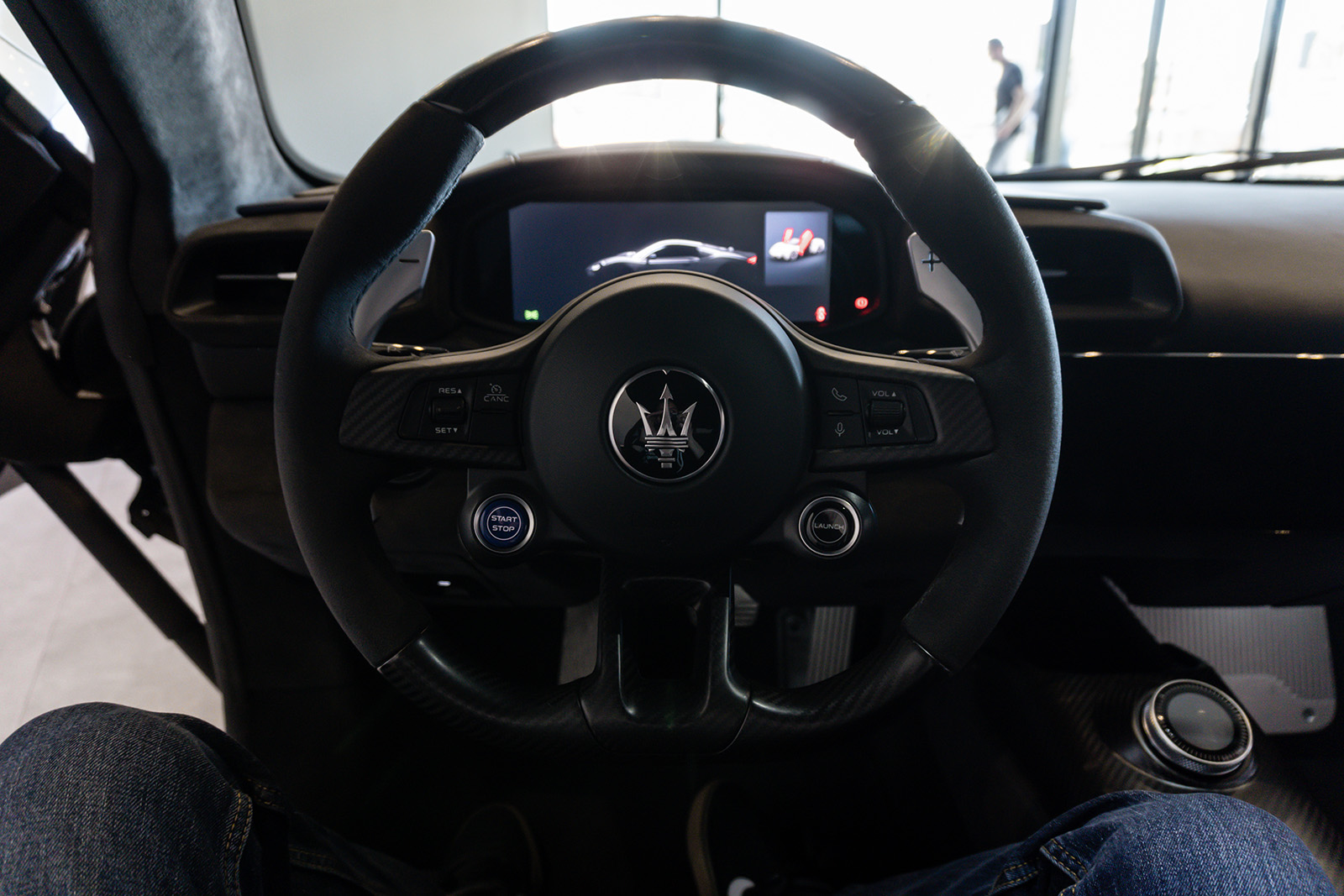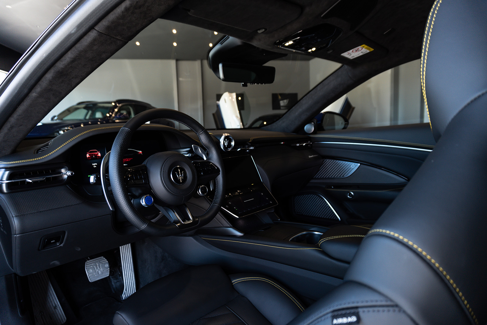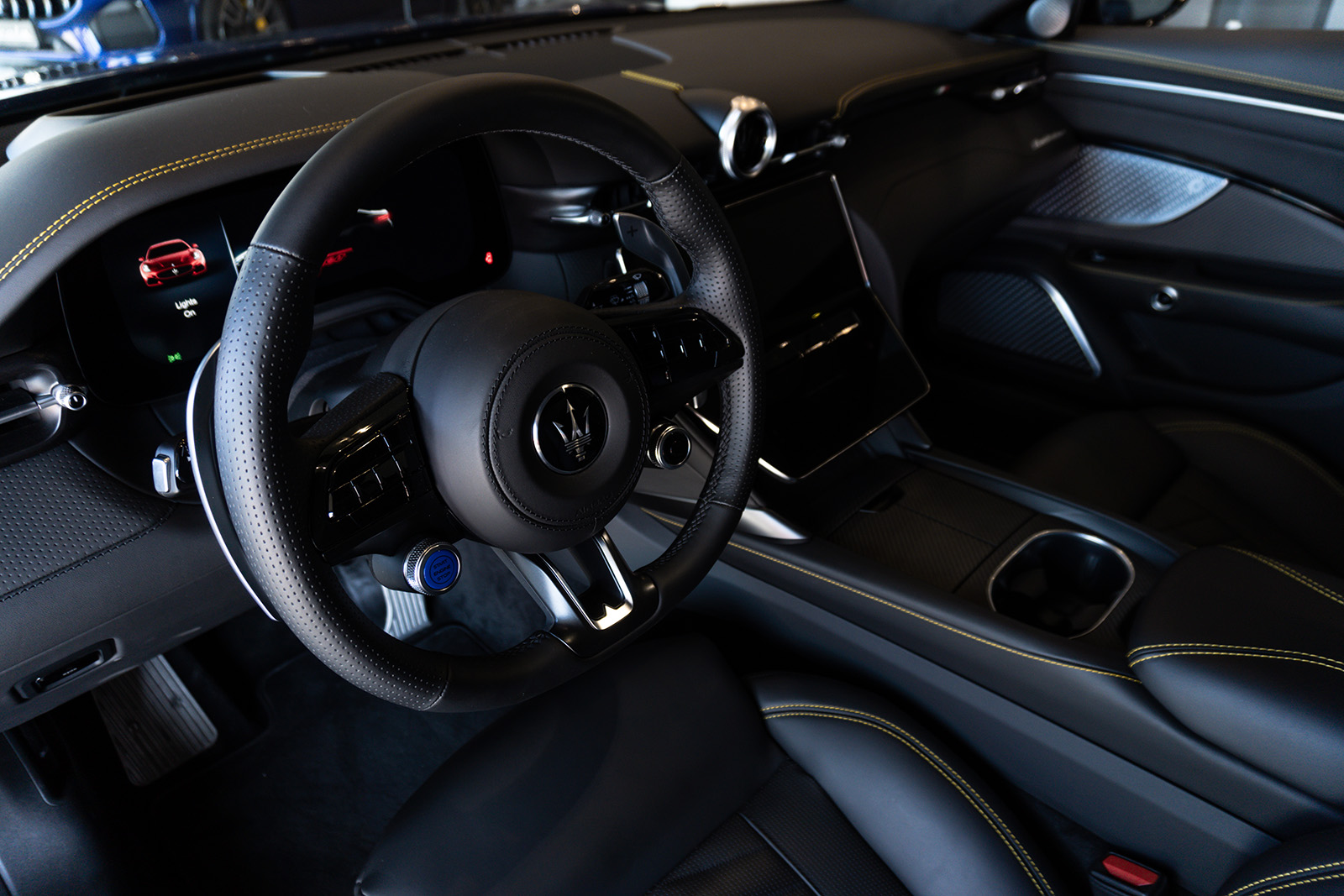 Кабината на Maserati MC20 не пречекува со минимализам и одлични материјали. Впечатливата алкантара е комбинирана со кожа и други висококвалитетни материјали, пријатно опкружувајќи го возачот. Воланот можеби ви изгледа познат – тој е речиси идентичен со оној во Alfa Romeo Giulia и Stelvio. Има и копчиња на воланот, иако имаат малку поинаква функција. Зад воланот има две големи лопатки кои управуваат со менувачот. Тие се прикачени на управувачкиот столб така што секогаш се во совршена положба.