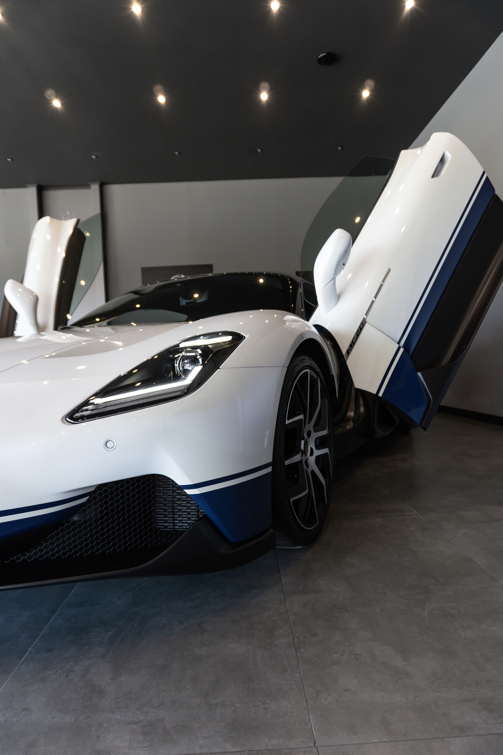 Да почнеме од Maserati MC20 – конкретниот примерок кој е пристигнат е во 1 of 1 конфигурација, што го прави уште повеќе имресивен и уникатен! Maserati MC20 е модел кој воведе почеток на ново, многу интересно поглавје во историјата на оваа компанија. MC20 е првиот модел на марката со централно поставен мотор по легендарниот MC12. Овој автомобил го покажува технолошкиот развој на брендот и по долги години, дојде време за враќање на автомобил со централно поставен мотор.