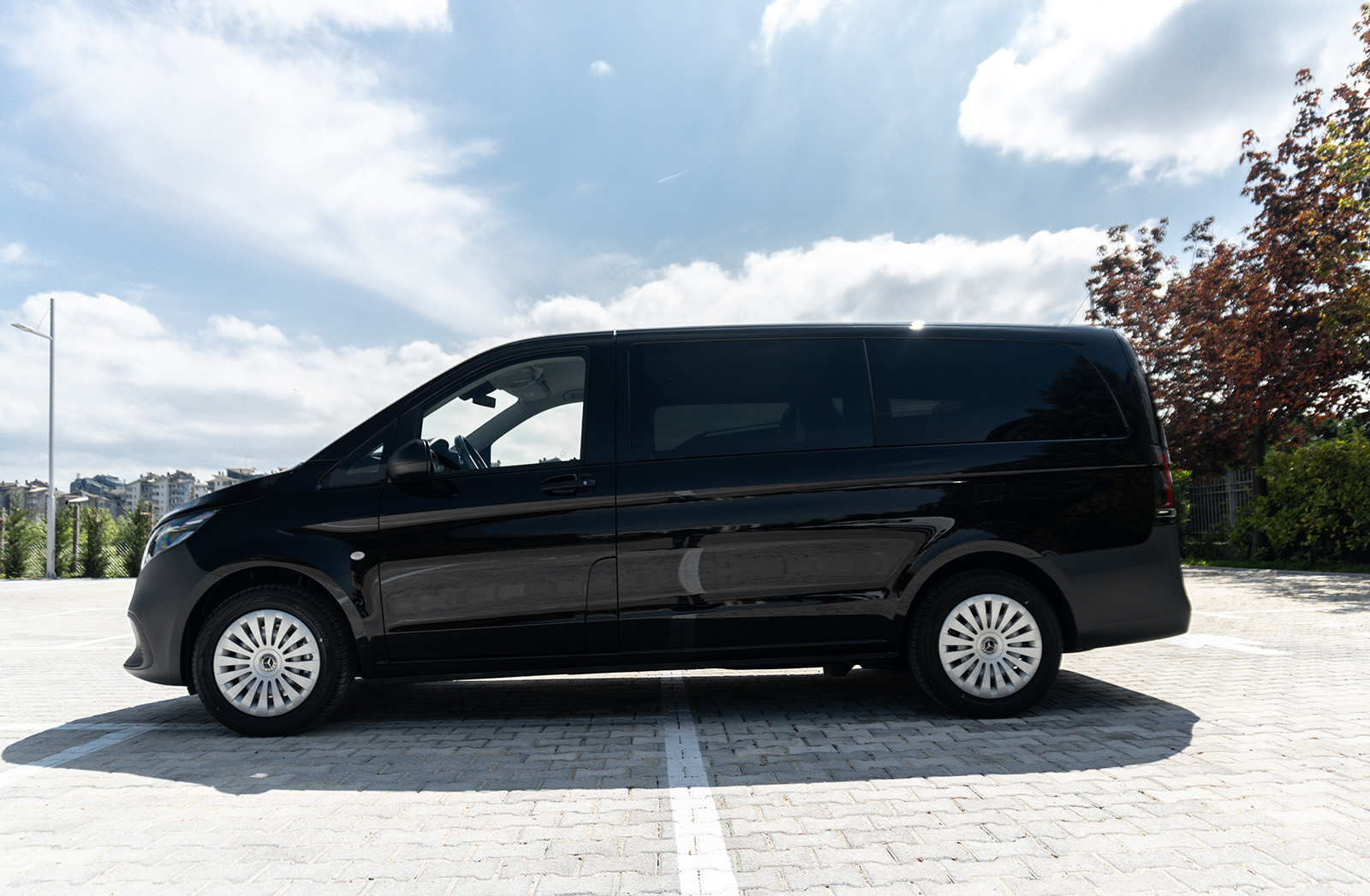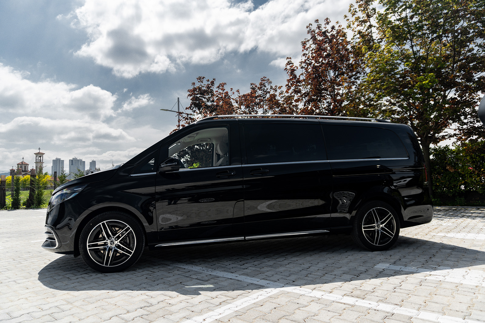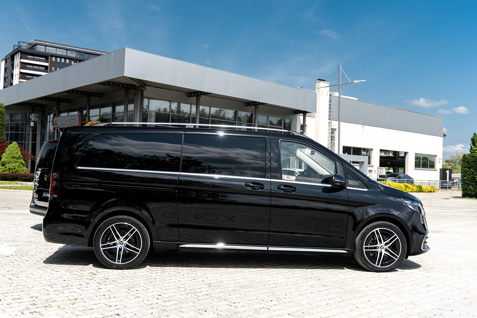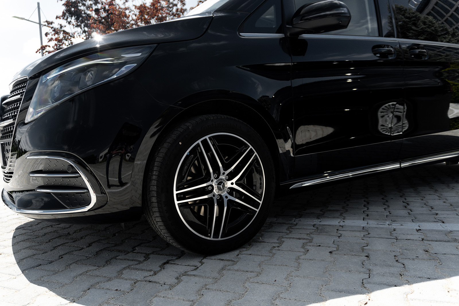 Од друга страна, Новиот луксузен Mercedes V-Class доби долга листа на новитети. Најпрво овде наоѓаме огромна хромирана решетка и карактеристично лого на Mercedes на хаубата. Покрај тоа, има и 19-инчни бандажи скриени во крилата на тркалата. Конкретниот примерок е во AMG-Line варијанта, а тоа значи малку „поспортски“ изглед и неколку интересни детали.