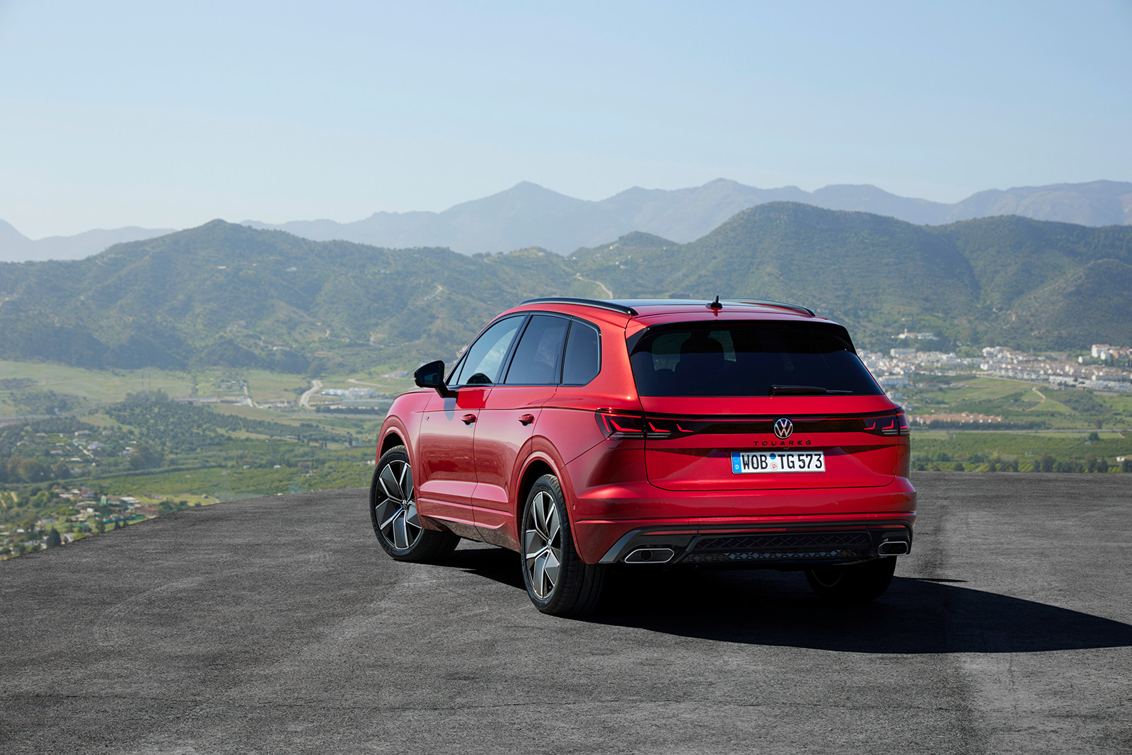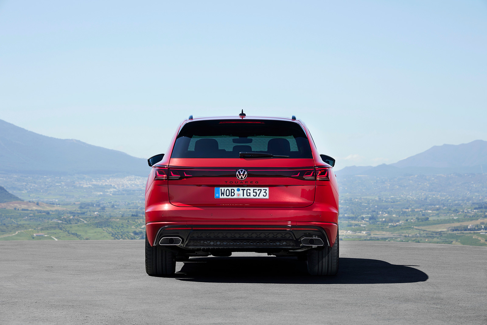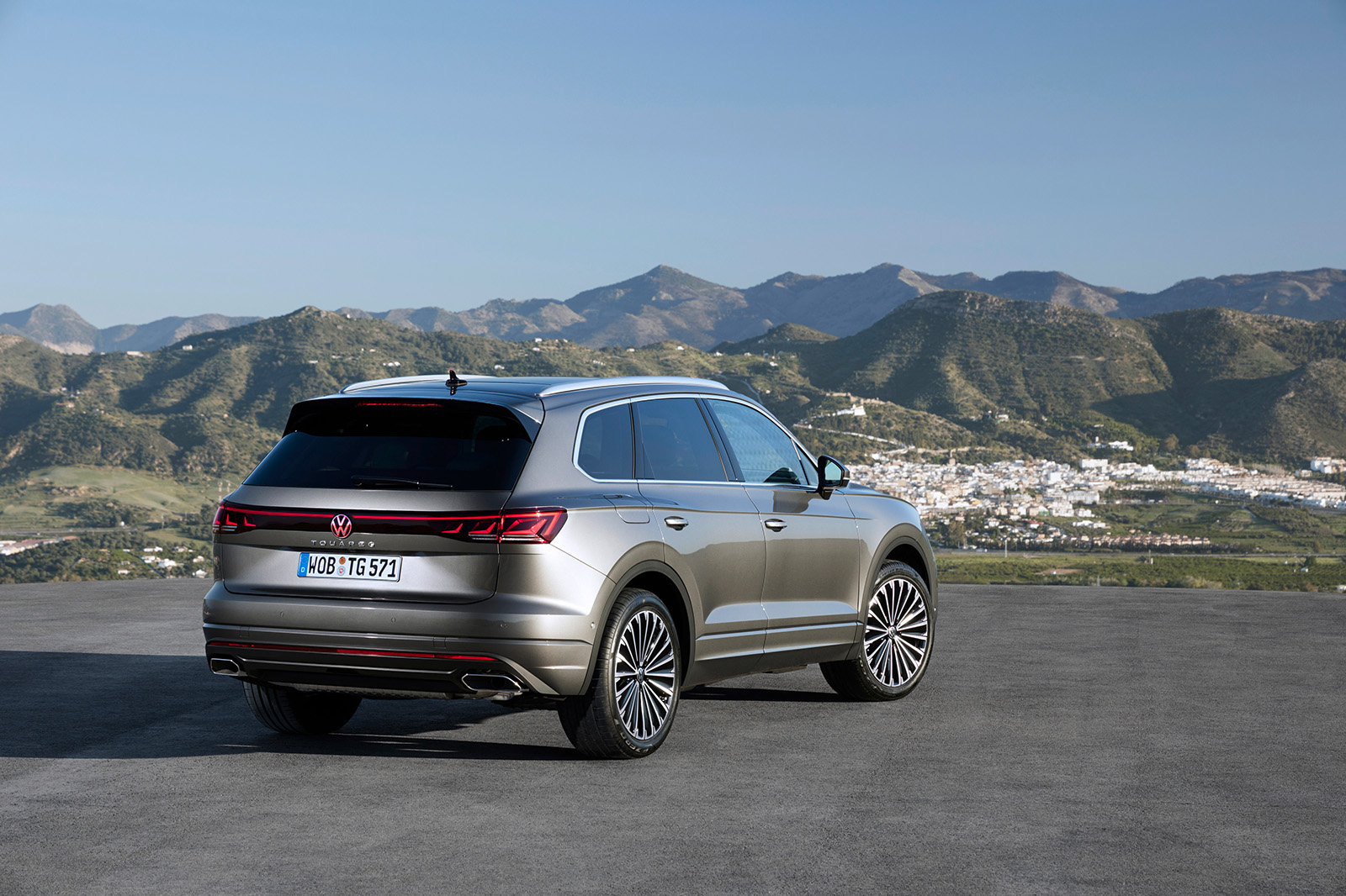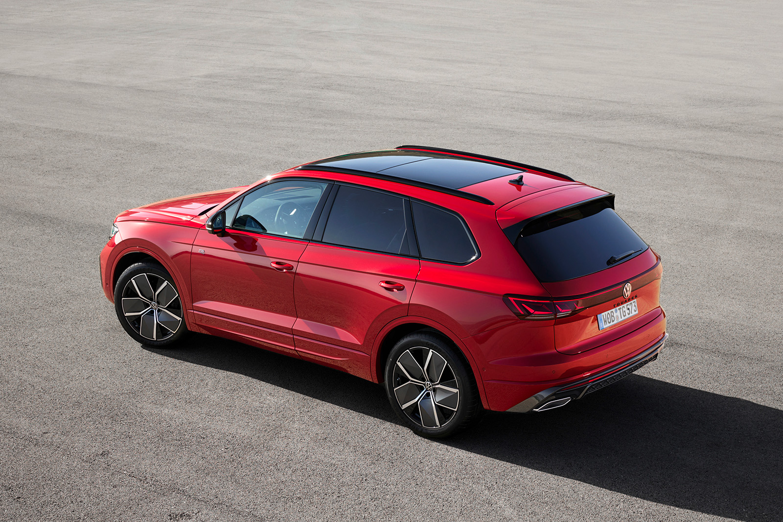 Слични промени може да се најдат и на задната страна, каде што светлата (со нов светлосен потпис) се комбинирани со LED лента и осветлено лого на брендот. И овде наоѓаме променет браник и минимално изменети леќи. Во крилата на тркалата, дебитираат нови дизајни на тркала од 19 до 21 инчи во стандардните верзии. Спортскиот Volkswagen Touareg R добива алуминиумски тркала од 22 инчи.