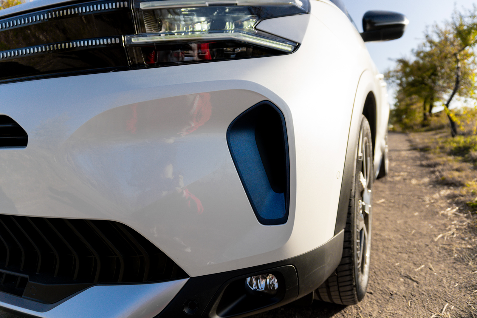 Естетското дотерување му дава на Citroën C5 Aircross помодерен и поприфатлив целокупен карактер. И претходно автомобилот изгледаше елегантно и препознатливо, но сега со освежувањето изгледа уште подобро и поимпресивно од моделот што го заменува. Всушност, би рекол дека C5 Aircross моментално е „најнормалниот“ модел во понудата на брендот во однос на дизајн. Но ајде да се навратиме на промените кои се направени – и покрај тоа што не се кој знае колку драстични, новиот модел е веднаш препознатлив и не треба да ги гледете двата модели еден до друг за да ги приметите разликите. Предниот дел добива целосно нов естетски идентитет кој се состои од нова решетка која сега се протега по целата ширина на автомобилот. Исто така, комплетно нови се и LED фаровите кои за разлика од тие на претходниот модел што беа поделени на два дела сега се едноделни и според мене изгледаат многу поубаво. Редизајниран е и браникот, како и доводите за воздух во него.