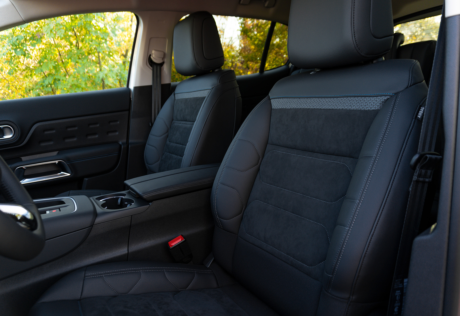 Доминантна карактеристика на C5 Aircross останува просторноста и практичноста на задните седишта. Трите независни седишта се лизгаат по должина од 15 см, а наклонот на грбот е исто така прилагодлив, па така патниците поединечно може да си го наместат седењето според нивните желби. Просторот за главата има доволно, но оние кои се малку повисоки може да имаат минимален проблем со просторот за нозете. Исто така, на задните седишта можат да се сместат и тројца патници без да биде неудобно.