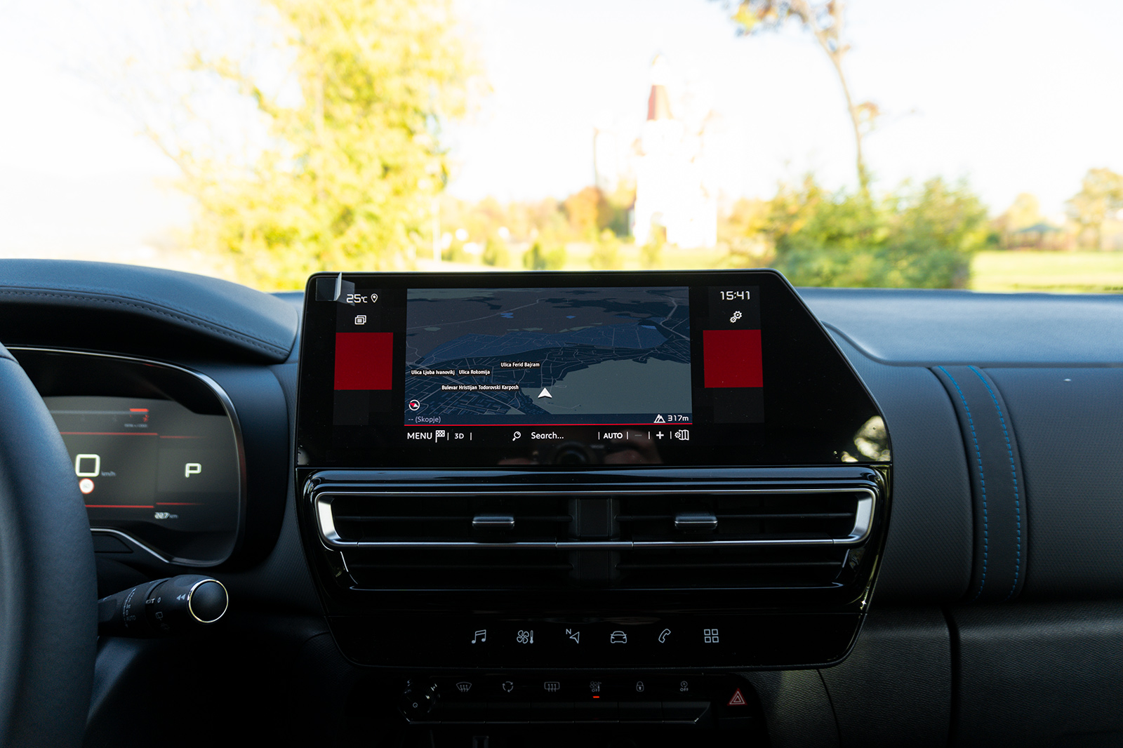 Па ајде да се префрлиме на најважните промени – освежениот C5 Aircross добива нов 10-инчен екран за инфозабавниот систем кој е позициониран повисоко во центарот на контролната табла. Системот има нови апликации, подобрена графика и нуди побрзо ракување, но би сакал менито да е малку поедноставно за користење. Сето ова е надополнето и со нова целосно дигитална инструмент табла за возачот која е со големина од 12.3-инчи. Екранот може да го конфигурирате според вашите желби, а достапни се и неколку различни прикази. Информациите кои се прикажуваат се јасни и читливи.