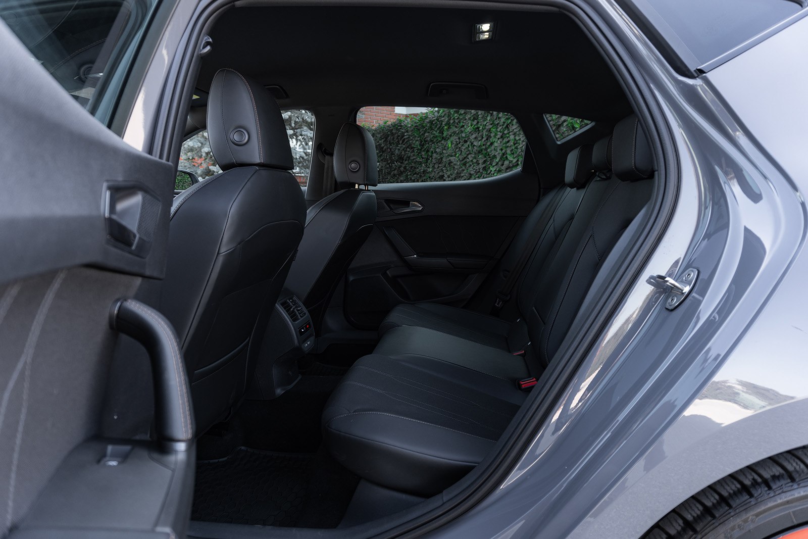 Cupra Leon го нуди очекуваниот компактен стандард во однос на просторот во вториот ред на седиша. Тука удобно ќе патуваат не само децата, туку и двајца повисоки возрасни патници. Фактот дека Leon е првенствено наменет за двајца возрасни во задниот дел потсетува на посочената форма на задната клупа како и присуството на поизразен централен тунел. Удобноста при патувањето за патниците одзади е комплетирана со склопувачки централен потпирач за раце со вградени држачи за пијалоци и присуство на USB приклучоци за напојување. Има и посебни вентилациони отвори со сопственат температурна зона со можност за независно регулирање на температурата.