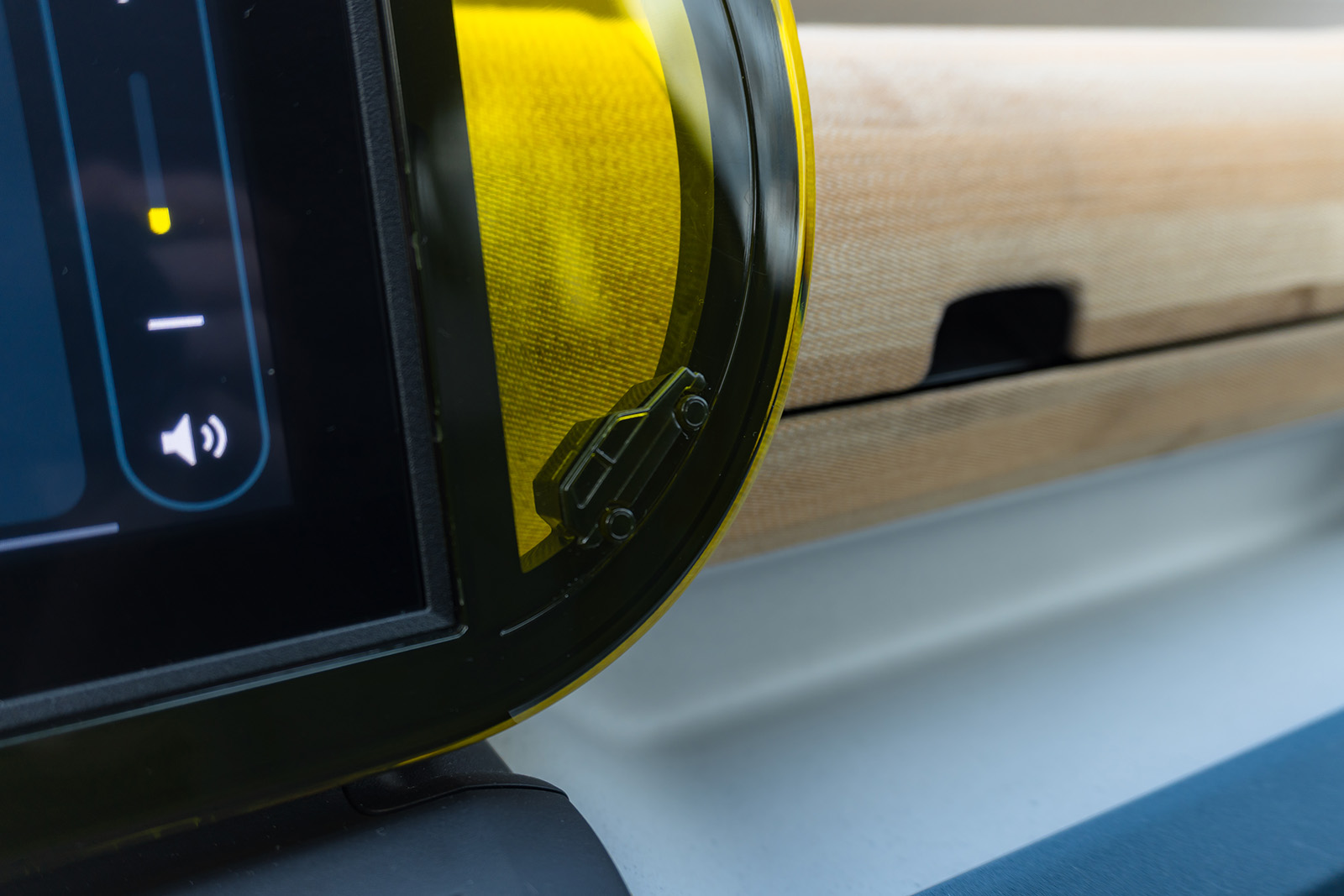 Освен тоа, инструмент таблата има овална форма, при што луѓето од Fiat нагласуваат дека инспирацијата доаѓа од соодветно обликуваната шина на покривот на нивната иконска фабрика во Лингото. Дигиталната позадина на Grande Panda е во согласност со денешните барања. Значи, имаме панел на кој се сместени двата екрани. Инструмент таблата има дијагонала од 10-инчи. Графиката можеби не е одлична, но во однос на информациите ги обезбедува сите корисни информации за возачот.