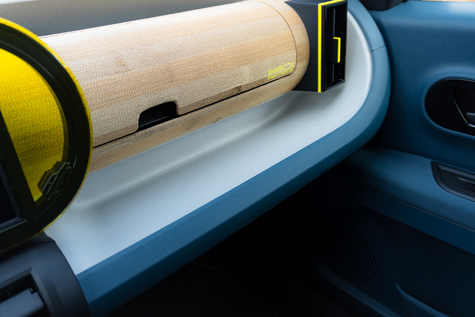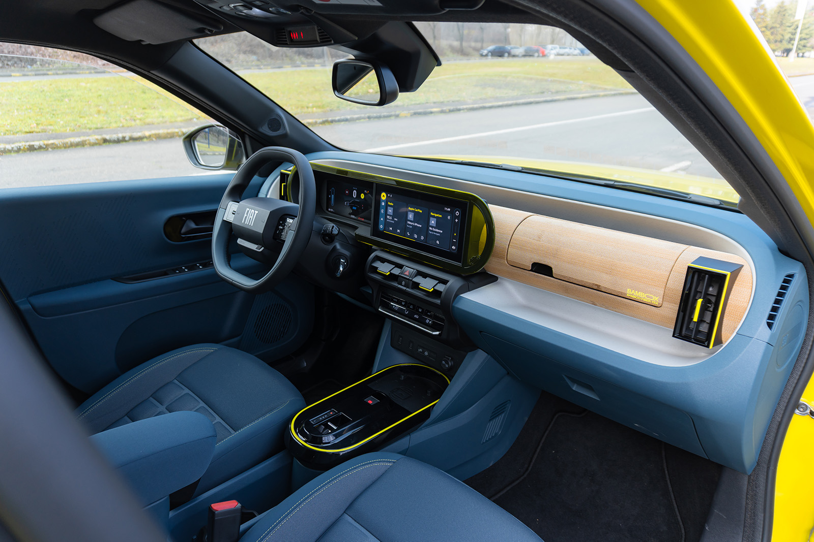 Она што исто така се издвои во верзијата La Prima што ја возев е тапацирот кој е составен од 33% бамбусови влакна (паметно размислување со оглед на името на моделот) и претежно ja покрива преградата што се наоѓа директно пред патникот. Иако се користи малку потврда пластика, како што е случајот со сите автомобили што чинат околу 20.000 евра, целокупниот впечаток на кабината е квалитетен, што се должи на цврстото склопување и внимателната примена на материјалите.