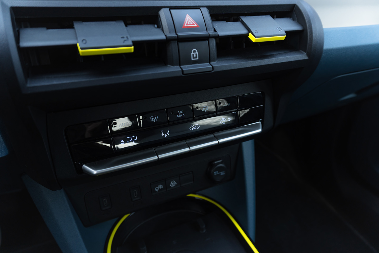 Италијанскиот сјај што ја регулира кабината на Grande Panda – за среќа – не е на сметка на ергономијата и практичноста. Најважно од сè, климатизацијата, останува да се регулира со посебен панел со физички прекинувачи. Исто така, има четири USB-C порти, при што патникот, покрај конвенционалната преграда, има уште еден горе, како и полица каде што може да смести разни мали предмети (клучеви, мобилен телефон). Додадете ги и џебовите на вратите, двата држачи за чаши (не е најзгодниот распоред) и потпирачот за раце во верзијата La Prima. Вкупно, FIAT објавува дека капацитетот за складирање внатре достигнува 13 литри.
