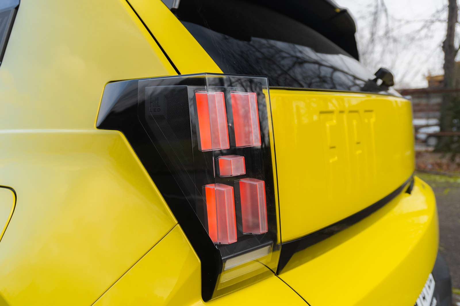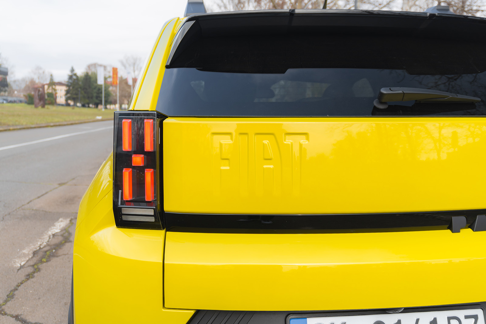 Но, посебните детали не запираат тука. Како и на задниот столб, има дискретна, скриена графика со логото на брендот. Сликата на задниот дел е слична, каде што од едната страна е врежано „FIAT“, а од другата страна „Panda“ е напишано со релјефни тродимензионални букви. LED светлата се поставени високо и заедно со малиот, дискретен спојлер на крајот од покривот го надополнуваат уникатниот лик на Grande Panda.