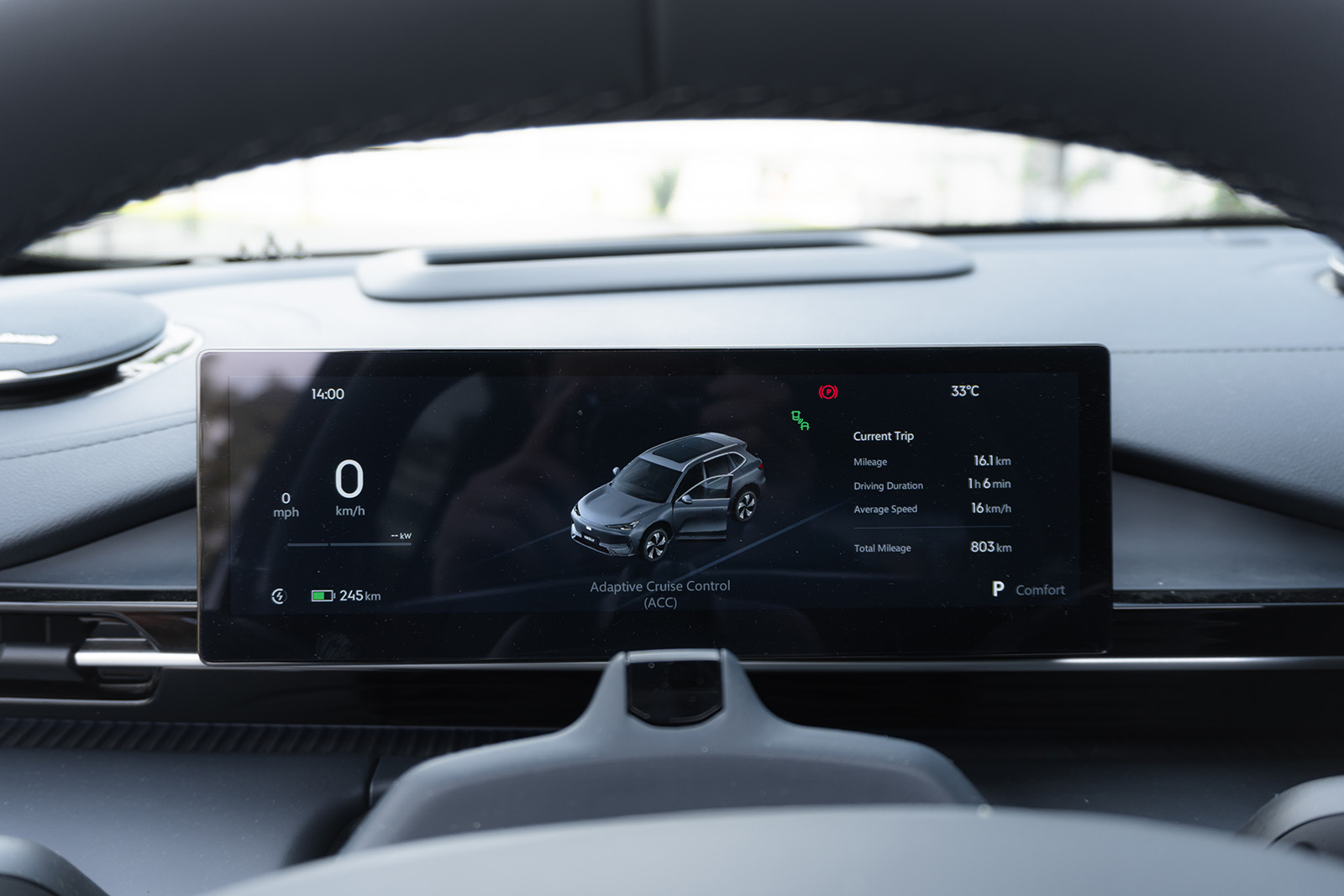 EX5 доаѓа со 16 различни системи за помош, плус седум воздушни перничиња, создавајќи комплетен безбедносен оклоп. Проблемот? Многу од нив работат премногу наметливо, особено за наши стандарди. Секој пат кога возите, мора да ги оневозможите (длабоко во менијата) функциите како што се помош за одржување на лента, препознавање на брзина или „паметно“ следење на вниманието на возачот. Во спротивно, ќе бидете карани со постојани звуци секој пат кога возите како… секој нормален возач. Сепак, Geely направи добра работа во поставувањето на системите – тие се помалку досадни од нивните колеги во другите кинески – и европски модели.