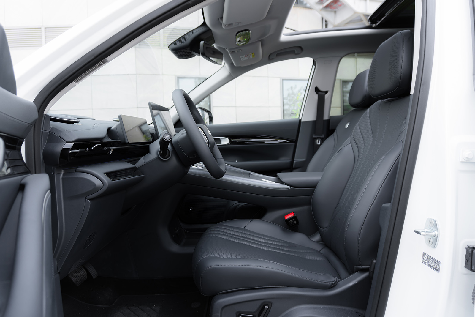 Влегувајќи во кабината, влегувате во друг универзум. Кој нема никаква врска со класичната надворешна слика на автомобилот. Модерна средина составена од материјали со одличен квалитет (не само wannabe premium) и со соодветно ниво на склопување. Тука, EX5 јасно ги покажува своите премиум аспирации.