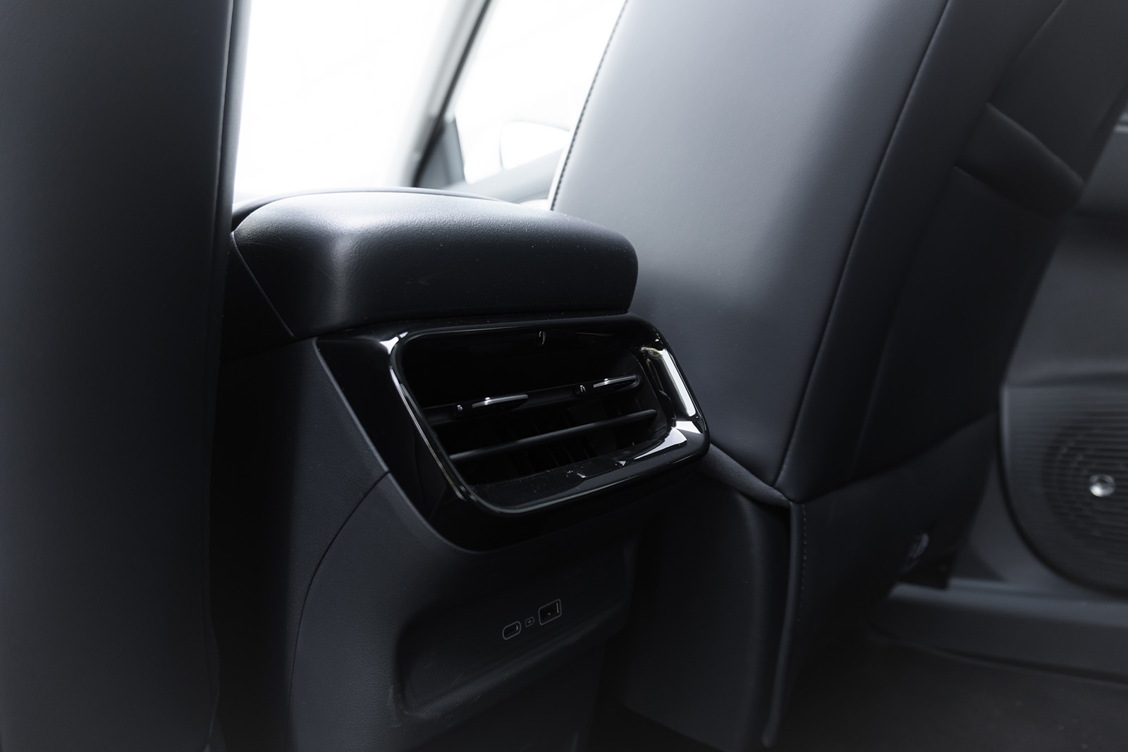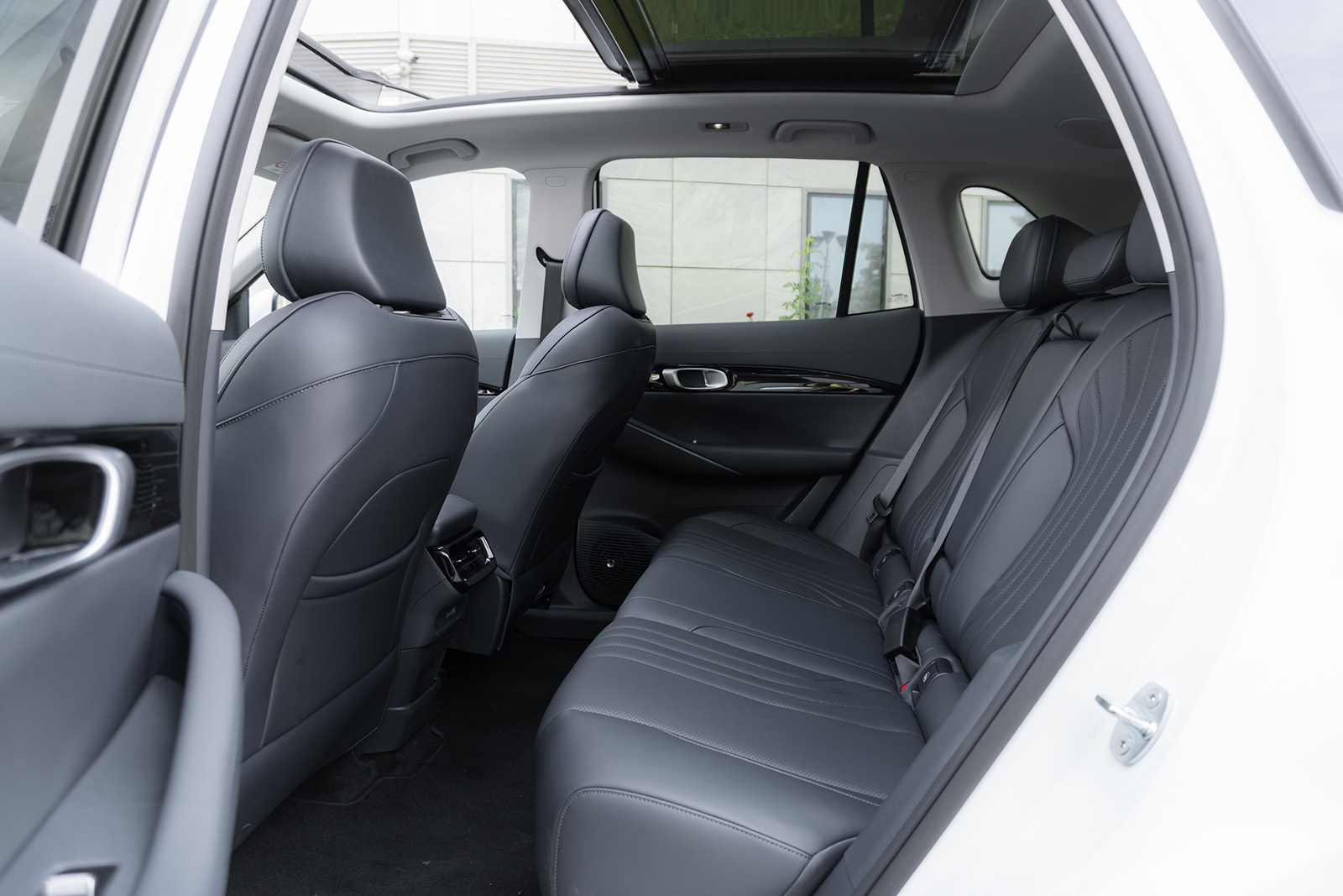 Задните седишта се исклучително пространи за големината на автомобилот, со потпирачи за грб што се спуштаат и комплетно рамен под. И покрај тоа што покривот е спуштен назад, просторот за глава е одличен, а просторот за нозе е повеќе од доволен за возрасни патници, што ја прави удобноста импресивна за долги патувања. Патниците на задните седишта исто така имаат корист од вентилациони отвори за климатизација во трета зона, USB-A и USB-C порти, централен потпирач за раце со држачи за чаши, големи џебови на вратите, па дури и фиока за складирање под седиштето. Панорамскиот покрив дополнително го подобрува чувството на просторност и осветленост. Значи, генерално, EX5 нуди тивка, добро опремена средина што е далеку над просекот за оваа категорија.