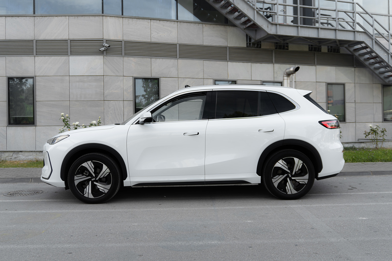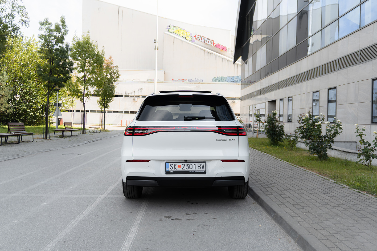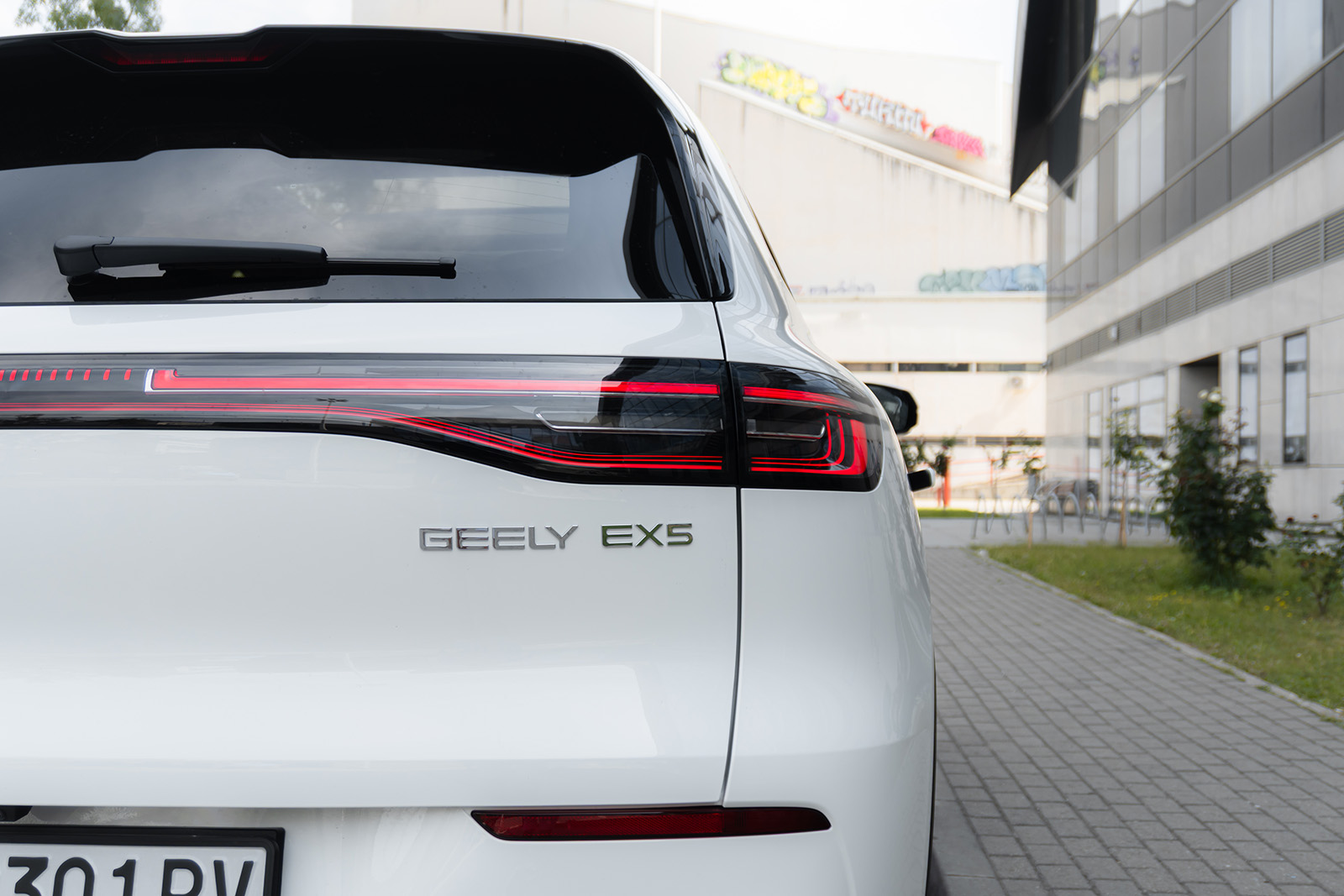 19-инчните бандажи за возврат му даваат на автомобилот естетски бонус, но целта останува јасно насочена кон купувачи со класична естетика. Очигледно, Geely знаеше што прави, бидејќи неговата намера е да привлече широк пазар. Со оглед на тоа што очигледно помалку купувачи бараат нешто визуелно уникатно, ќе откријат дека на EX5 му недостасува смелост или иновативност.