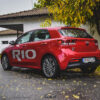 Во споредба со претходната генерација, надворешниот дизајн на новото Rio е мнооогу подобар и попривлечен. Голем впечаток остава предниот дел со големата маска која е во сјајна црна боја, во комбинација со црвената боја на тестираниот модел му дава посебен спортски изглед. На задниот дел најмногу до израз доаѓаат LED светлата кои одлично се вклопуваат со возилото и изгледаат кул. Плус моделот што го возев имаше 17 инчни бандажи па очите на сите минувачи паѓаа баш таму.