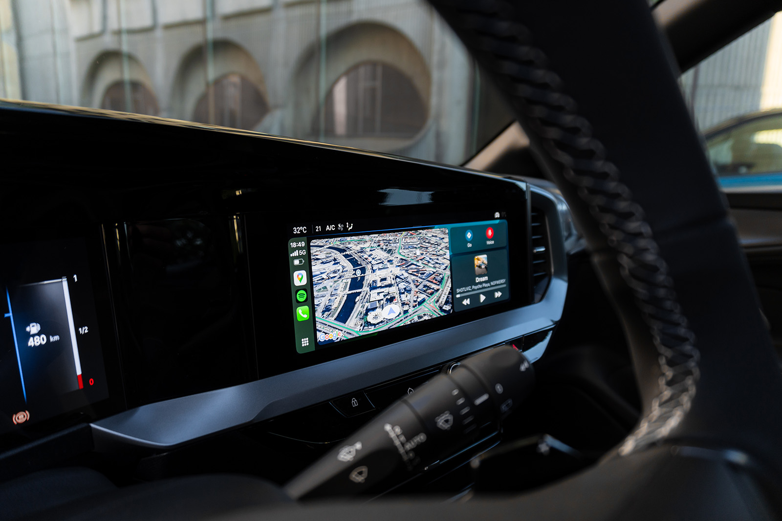 Дигиталната инструмент табла и инфозабавниот систем (во повисокото ниво на опременост) имаат иста големина на екран од 10 инчи и модерна графика со висока резолуција. Новите контролни копчиња на воланот изгледаат малку поевтини во споредба со претходните, но нема ништо лошо во нивната функционалност. И покрај намалувањето на копчињата, удобноста при ракување не е значително нарушена. Mokka сè уште задржува посебна табла за контрола на климата, која е многу удобна за употреба без да мора да го тргнете погледот од патот, а исто така е лесно да се прилагодат поставките на системите за помош, што понекогаш може да биде непотребно вознемирувачко.