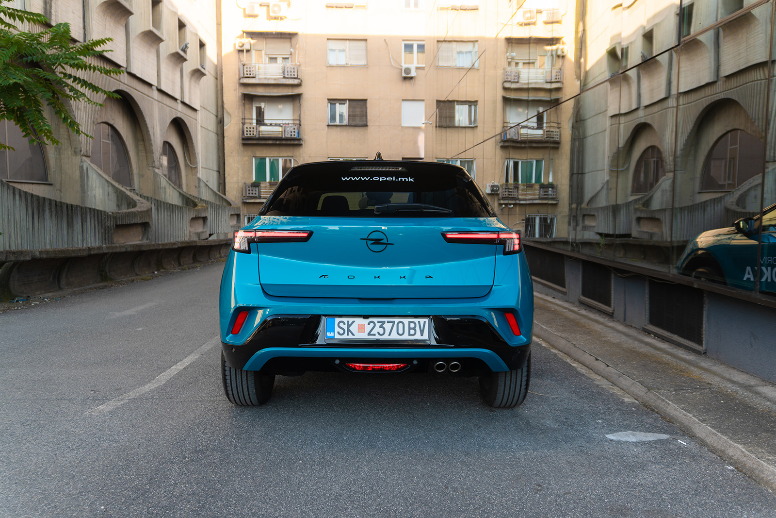 Самиот заден дел е доминиран од светлата, кои се протегаат од браниците до центарот на автомобилот како тесен држач под препознатливиот раб на петтата врата. Тука, промените се навистина суптилни и се однесуваат на светлата кои сега добија комплетно нова графика. Генерално, Mokka и пред освежувањето изгледаше навистина добро и атрактивно, па затоа не беа потребни преголеми промени во надворешниот дизајн. Mokka и понатаму останува еден од најинтересните модели во сегментот – особено во оваа нова Tropical Green боја што ја има тест примерокот.