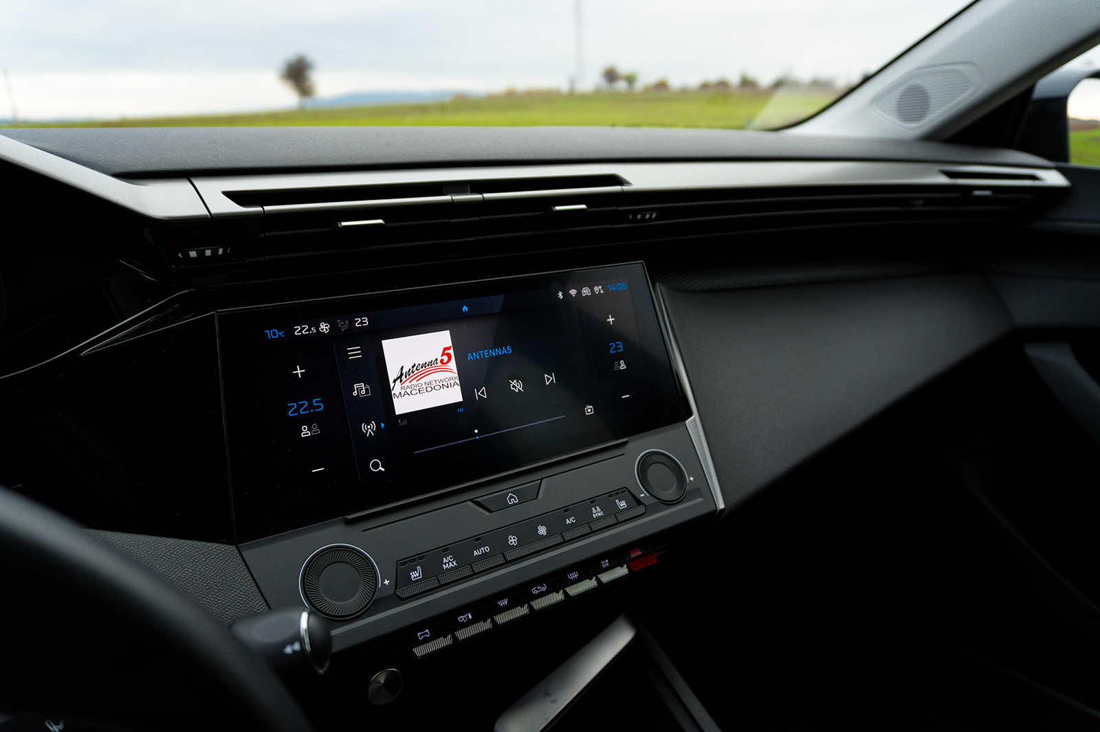 На централната конзола се наоѓа 10-инчен екран наменет за инфозабавниот систем. Новиот систем е каде,каде подобар од системот во претходните модели на Peugeot, дополнително и тука може екранот да го уредите како што вие сакате и главните работи што ги користите секогаш да бидат на „Home“ страната. Графиката е одлична и самиот систем е доста респонзивен и едноставен за корисење. Бидејќи ова е основното ниво на опременост, тука не се добива вграден навигациски систем, безжично поврзување со Apple CarPlay и Android Auto, а нема ни задна паркинг камера (задни паркинг сензори се стандардни и во ова ниво). Но она што е интересно кај оваа верзија е панелот под инфозабавниот екран, односно во другиот 308 што го возев претходно тука имаше дополнителен екран, кој Peugeot го нарекува i-toggles. Повторно, бидејќи станува збор за основен модел, на тоа место има физички копчиња кои служат како кратенки за клима-уредот и греењето на седишта. Да бидам искрен, иако со i-toggles екранот сето тоа изгледа многу поубаво, ова поедноставно решение е некако полесно за користење, особено што преку физичките копчиња може да ја регулирате климата и преку тркалцата може да ја подесите температурата на климата. Додека кај верзиите со екран, сите овие контроли за климата се подесуваат преку екранот.