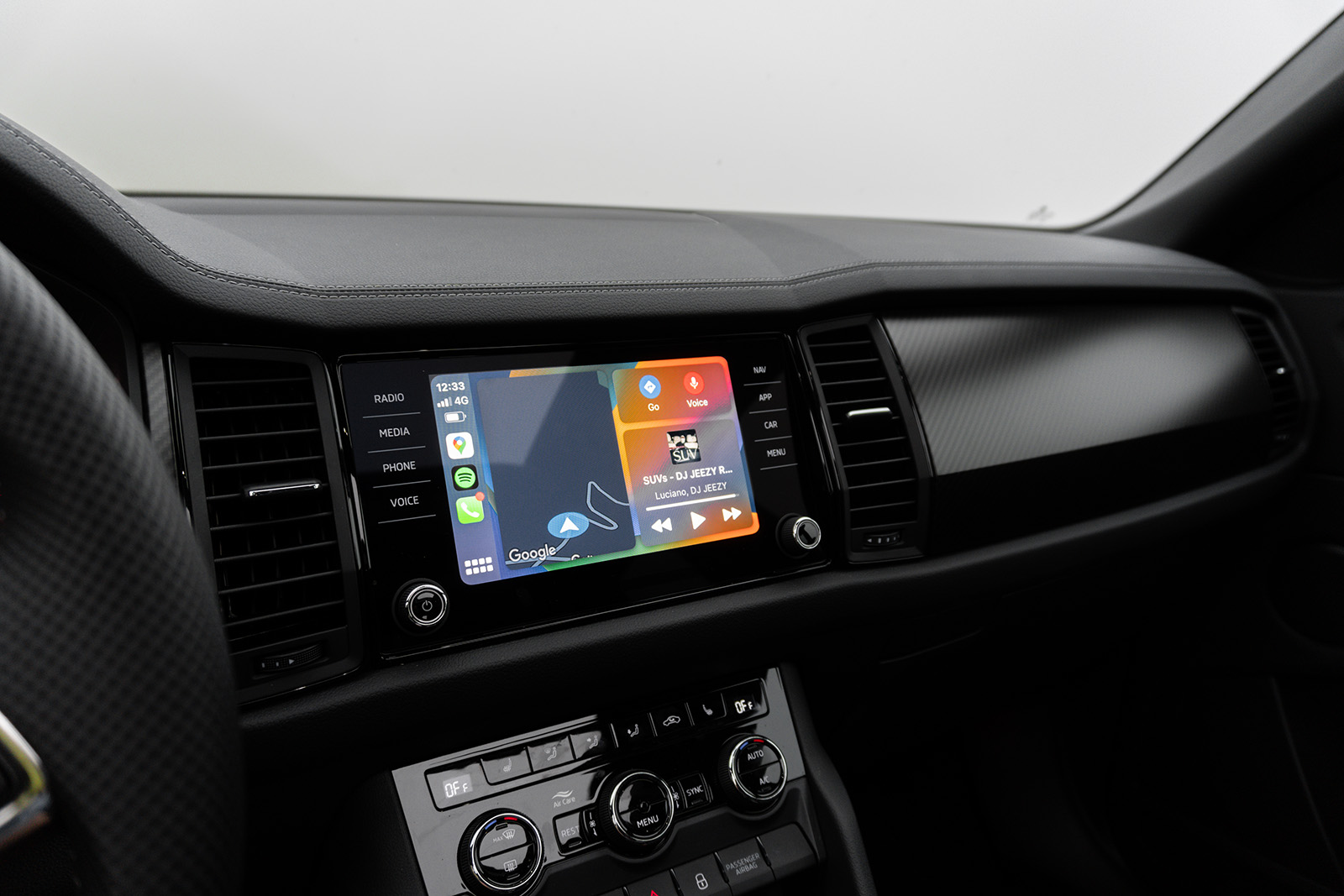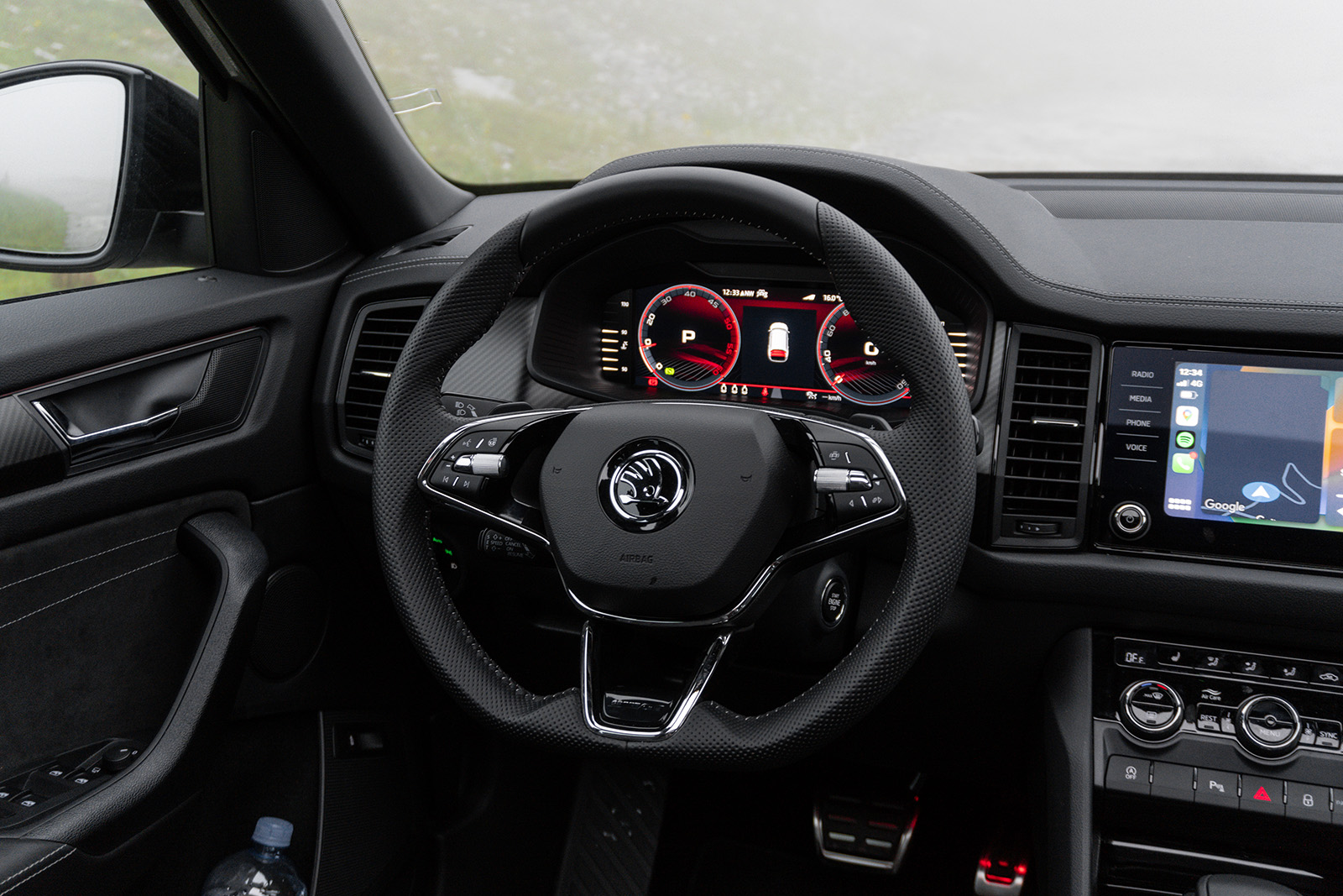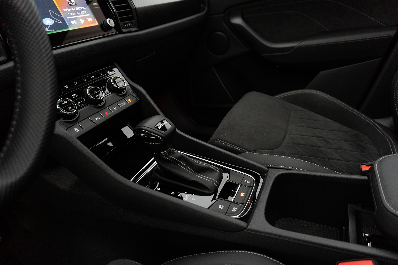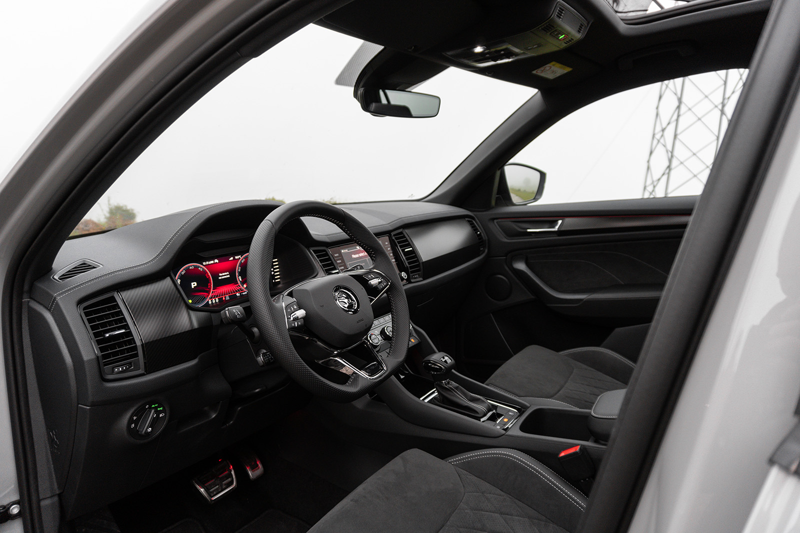 Пред возачот во оваа Sportline верзија стандардно се добива дигитален виртуелен кокпит со екран од 10.25-инчи. Како што доликува за Skoda, дигиталниот екран е многу читлив, графиката е пријатна за око и самата работа не предизвикува никакви проблеми, а достапни се и неколку различни прикази од кои може да одберете. Кога станува збор за инфо-забавниот систем, стандардно се добива Amundsen 8-инчен екран – таков има и тест примерокот, но во постара верзија отколку онаа во најновите модели на чешкиот бренд. Како дополнителна опција, достапен е и поголем Columbus систем со 9.2-инчен екран. Инаку, системот работи непречено, добро реагира на сите команди и совршено се поврзува (wireless) со паметни телефони преку Apple CarPlay и Android Auto. Благодарение на добрата резолуција и одличната паркинг камера, сликата што се прикажува на екранот има одличен квалитет. Можеби е малку помалку модерно од она што можеме да го видиме, на пример, во новата Skoda Octavia, но овој систем е каде-каде полесен за користење и не мора да го користиме екранот за секоја ситница.
