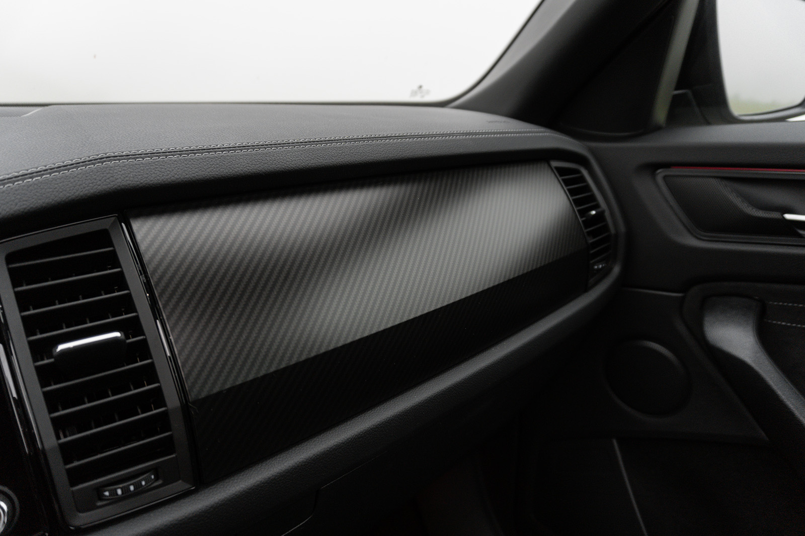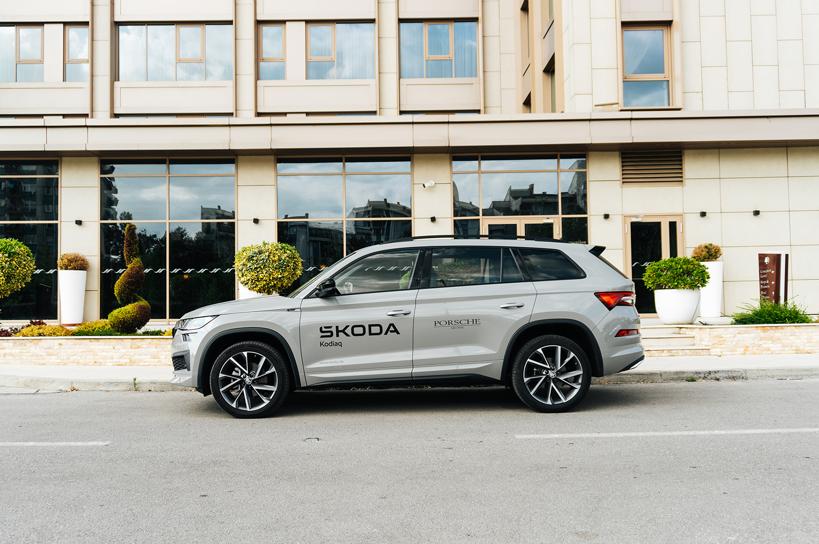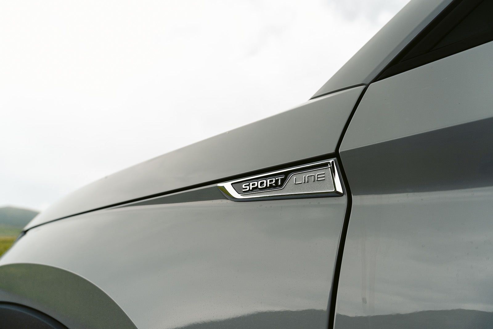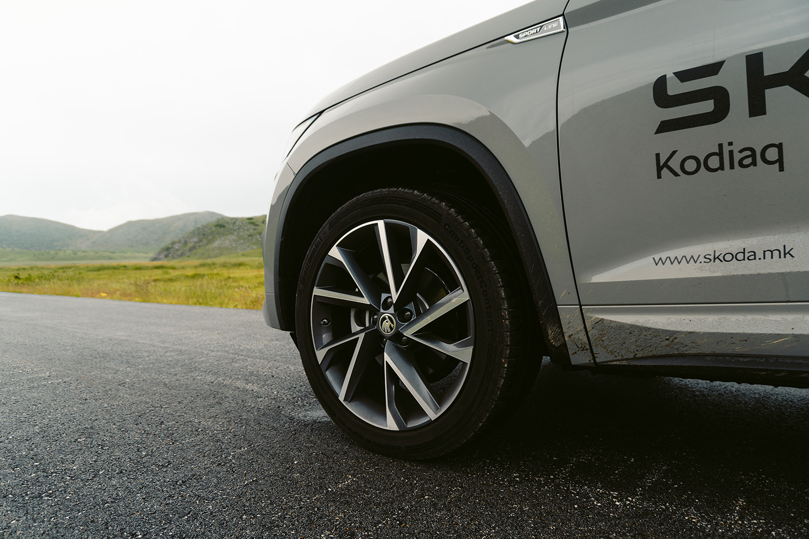 Односно, од надвор, Sportline верзијата се разликува по тоа што добива браници кои се целосно во боја на каросеријата, голем број на црни елементи – решетката на ладилникот, ретровизорите, шините на покривот, лајсните околу прозорците и натписите се во сјајна црна боја. Sportline ознаки може да се најдат и на предните крила и стандардно доаѓа со 19-инчни бандажи, сепак тест примерокот беше опремен со опционални 20-инчни бандажи. Голем фан сум и на конфигурацијата на конкретниот модел – Steel Grey бојата одлично му стои на Kodiaq, а во комбинација со сите тие црни елементи и големите двобојни бандажи едноставно придонесува за впечатлив изглед и убаво го нагласува поспортскиот карактер на оваа верзија.