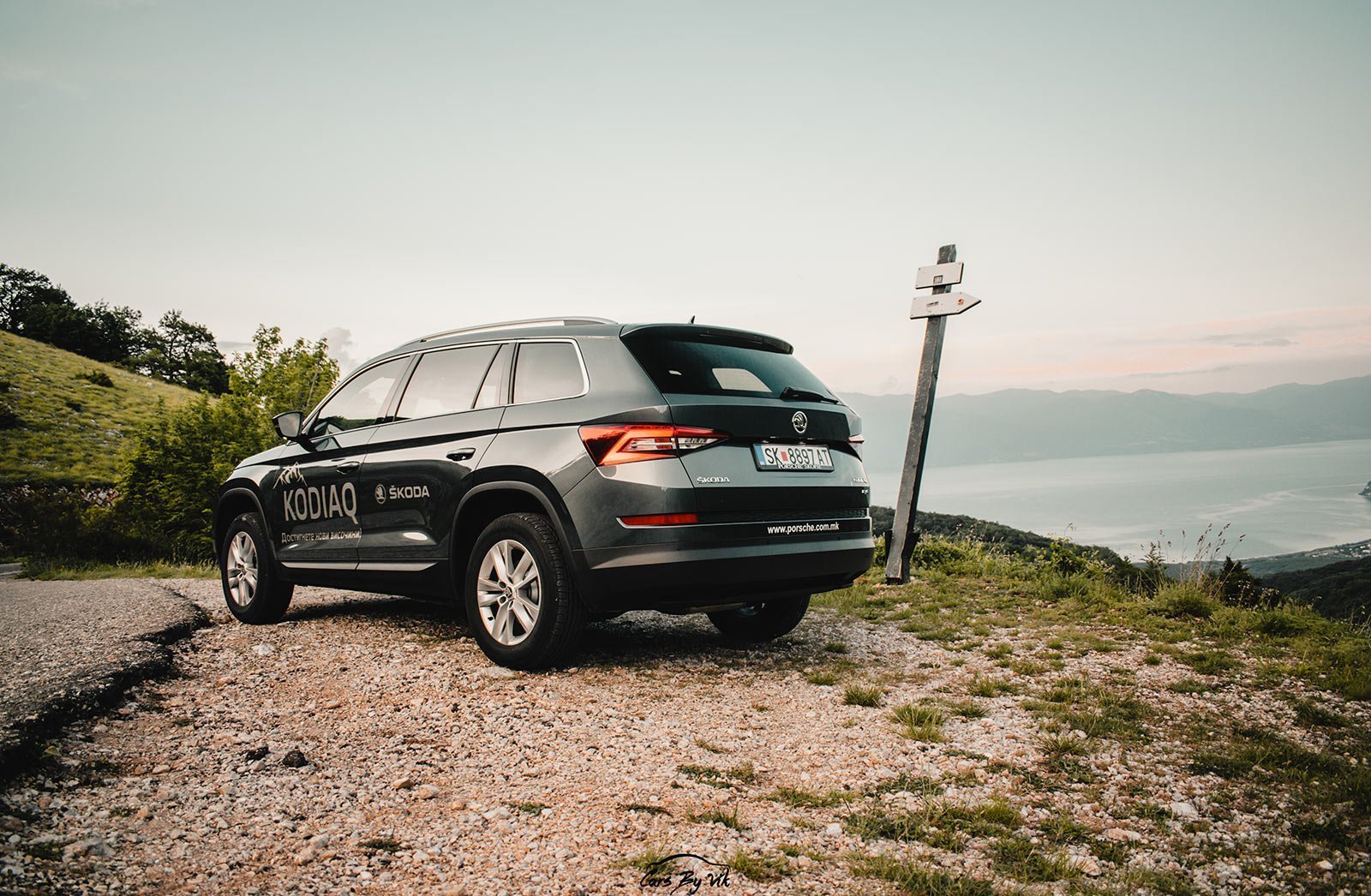 Со оглед на тоа дека се работи за SUV модел, седите доста високо и имате одлична прегледност напред и од страните, за позади дефинитивно ви требаат сензори(стандард во второто ниво и нагоре). Она што мене ми се допадна е дека управувачот е многу лесен, со што возењето во град и маневрирање во тесни места е доста лесно и не осеќате дека возите толку големо возило. Но, лошата страна на тоа е што при возење на автопат воланот е сеуште лесен и може малку да нервира…ова може да го подобрите доколку ја имате опцијата за да изберете различен Driving mode и кога ќе го ставите во Sport, воланот добива екстра тежина, разликата не е преголема, но дефинитивно помага. Исто така, како опција достапно е и Dynamic Chassis Control, а со оваа опција разликата помеѓу Normal и Sport е многу поголема. На помали брзини во град малку се осеќаат дупки и нерамнини, но ‘overall’ возењето е доста комфорно. На отворен пат е комплетно друга приказна, а бидејќи сакав да дознаам каков е Kodiaq на подолги патувања, направив еден трип од Скопје до Охрид и назад. Возењето е многу порелаксирано и покомфорно, изолацијата е на солидно ниво и има само минимална бучава од големите ретровизори, но реално не е нешто што ќе ви пречи. Kodiaq е тип на возило со кое што без никаков проблем ќе може да поминете илјадници километри, а притоа да не бидете изморени од патот. Доколку поминувате многу километри на отворен пат би ви препорачал да го земете опционалниот адаптивен темпомат кој работи заедно со Front Assist системот, тестираниот модел ја имаше оваа опција и работи перфектно. Кога станува збор за динамичност, Kodiaq е сосема океј. Да, нормално дека има понагласено навалување во кривини, но со оглед на габаритот и големината на возилото тоа е сосема очекувано. Не е возило кое го купувате за да уживате во брза и динамична вожња.