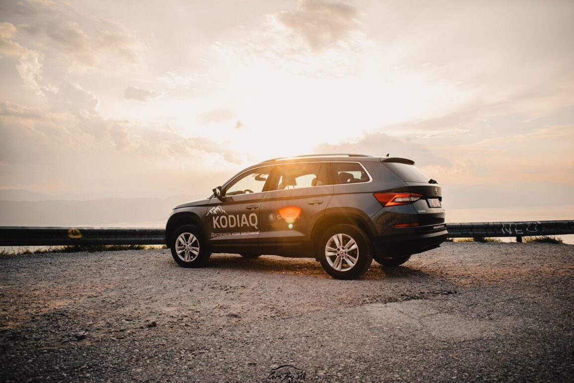 Со оглед на тоа дека се работи за SUV модел, седите доста високо и имате одлична прегледност напред и од страните, за позади дефинитивно ви требаат сензори(стандард во второто ниво и нагоре). Она што мене ми се допадна е дека управувачот е многу лесен, со што возењето во град и маневрирање во тесни места е доста лесно и не осеќате дека возите толку големо возило. Но, лошата страна на тоа е што при возење на автопат воланот е сеуште лесен и може малку да нервира…ова може да го подобрите доколку ја имате опцијата за да изберете различен Driving mode и кога ќе го ставите во Sport, воланот добива екстра тежина, разликата не е преголема, но дефинитивно помага. Исто така, како опција достапно е и Dynamic Chassis Control, а со оваа опција разликата помеѓу Normal и Sport е многу поголема. На помали брзини во град малку се осеќаат дупки и нерамнини, но ‘overall’ возењето е доста комфорно. На отворен пат е комплетно друга приказна, а бидејќи сакав да дознаам каков е Kodiaq на подолги патувања, направив еден трип од Скопје до Охрид и назад. Возењето е многу порелаксирано и покомфорно, изолацијата е на солидно ниво и има само минимална бучава од големите ретровизори, но реално не е нешто што ќе ви пречи. Kodiaq е тип на возило со кое што без никаков проблем ќе може да поминете илјадници километри, а притоа да не бидете изморени од патот. Доколку поминувате многу километри на отворен пат би ви препорачал да го земете опционалниот адаптивен темпомат кој работи заедно со Front Assist системот, тестираниот модел ја имаше оваа опција и работи перфектно. Кога станува збор за динамичност, Kodiaq е сосема океј. Да, нормално дека има понагласено навалување во кривини, но со оглед на габаритот и големината на возилото тоа е сосема очекувано. Не е возило кое го купувате за да уживате во брза и динамична вожња.