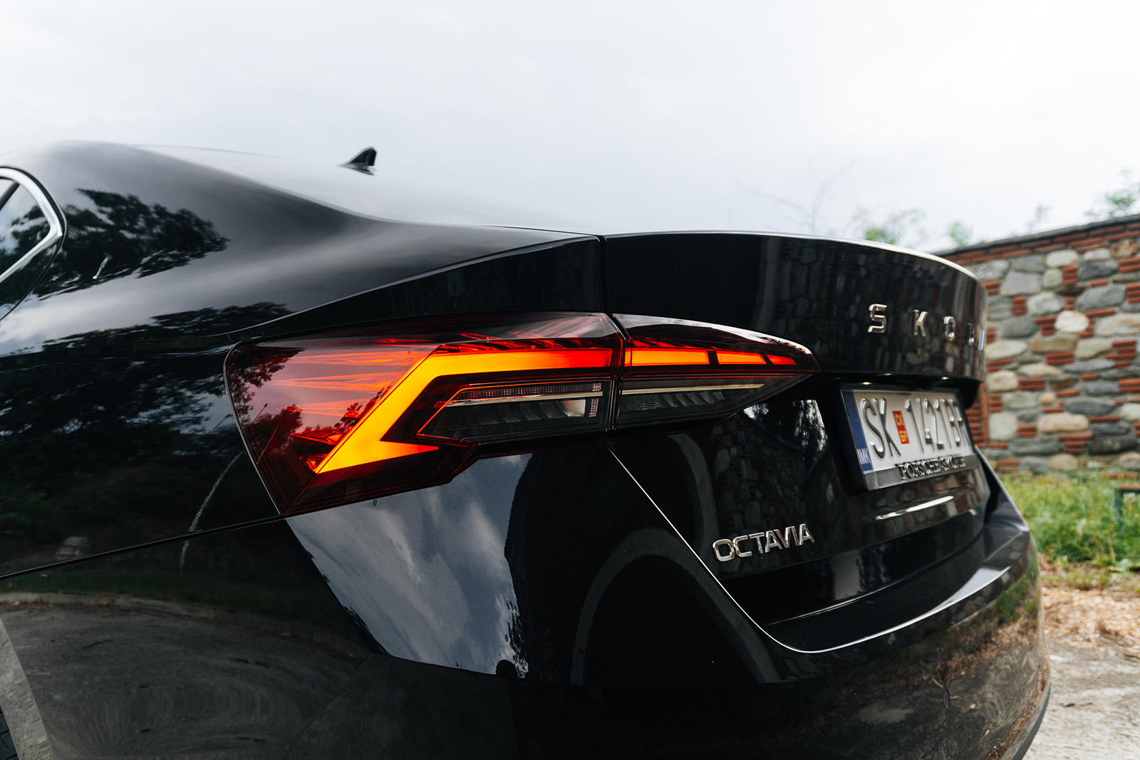 Профилот не претрпе никакви промени, освен тоа што сега се достапни нови дизајни за алуминиумските бандажи кои се движат со големина од 16 до 18 инчи. Конкретниот примерок е опремен со најголемите бандажи – а голема пофалба и за бојата, во денешно време е голема реткост да се најдат бандажи во чисто сребрена боја. Задните светла во основната верзија остануваат исти по изглед, додека опционалните целосно LED светла имаат редизајниран дизајн. Иако на прв поглед сè уште изгледа исто, тој се однесува на дизајнерските елементи на неодамна претставените повисоки модели на марката и му носи нови анимации Coming/Leaving Home. А тука се и динамичките светла за трепкачите. На задниот дел, освен овие промени, нова е и ознаката ŠKODA испишана на вратата од багажникот. Иако повеќе од 20% од продадените Octavia се автомобили обоени во црна металик боја, Škoda нуди цела палета на поинтересни бои, а понудата сега е збогатена со неколку нови нијанси.