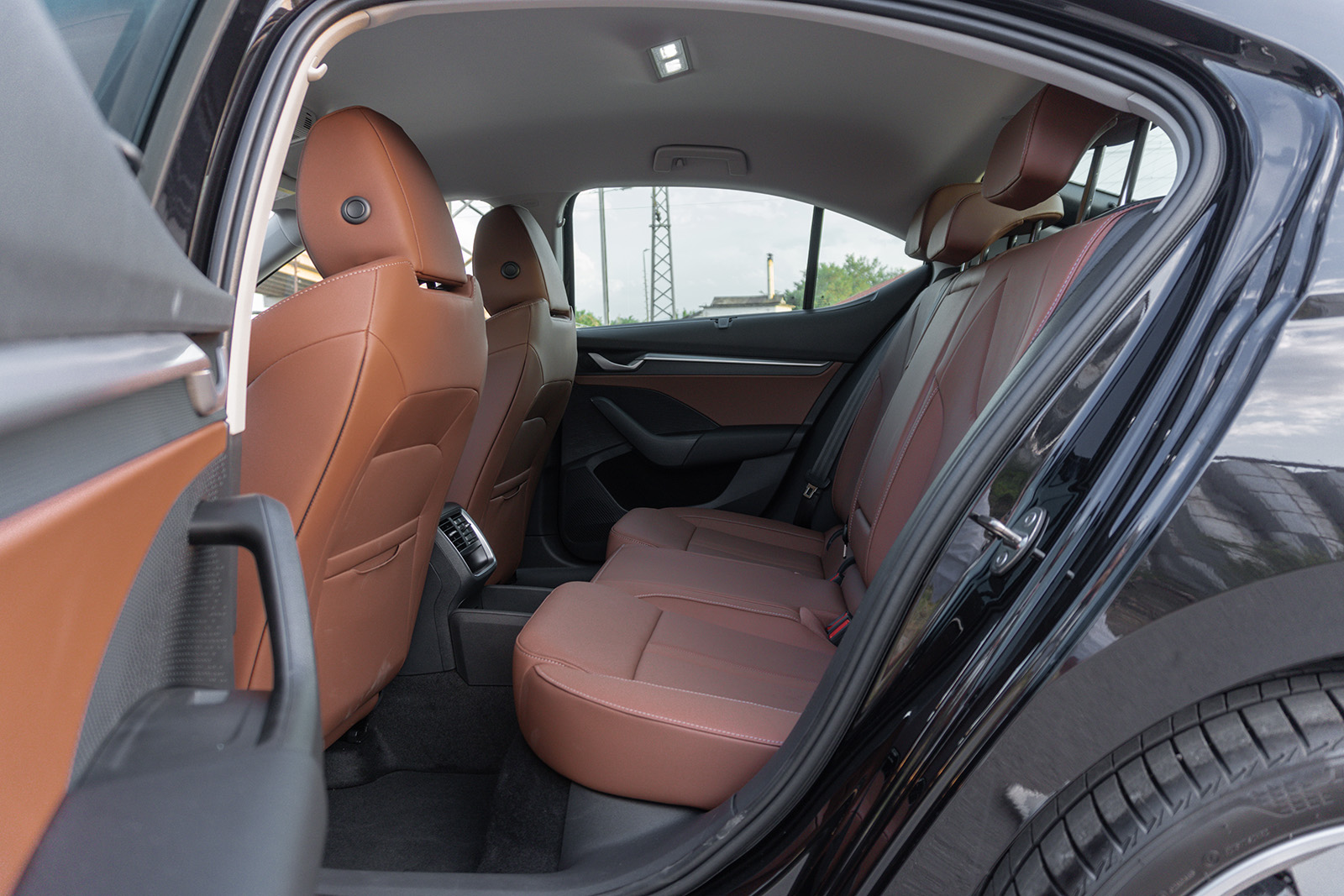 Ми се допаѓа и брзото полнење од 45 W преку USB-C, но и безжичниот полнач од 15 W со активна вентилација, благодарение на кој и безжичниот CarPlay може да се користи без проблеми и без прегревање на мобилниот телефон во преградата. Octavia во основа има двозонски клима уред, што е доста убаво, а во исто време – ако дојдат постудените денови – може да ја користи функцијата Heat за да вклучи сè што се загрева во автомобилот со едно копче: предното и задното стакло, воланот, климата и секако седиштата. Можеби ќе се смеете на ова, но во студените денови оваа функција ќе ви се најде и ќе заштеди кликнувања низ менито.