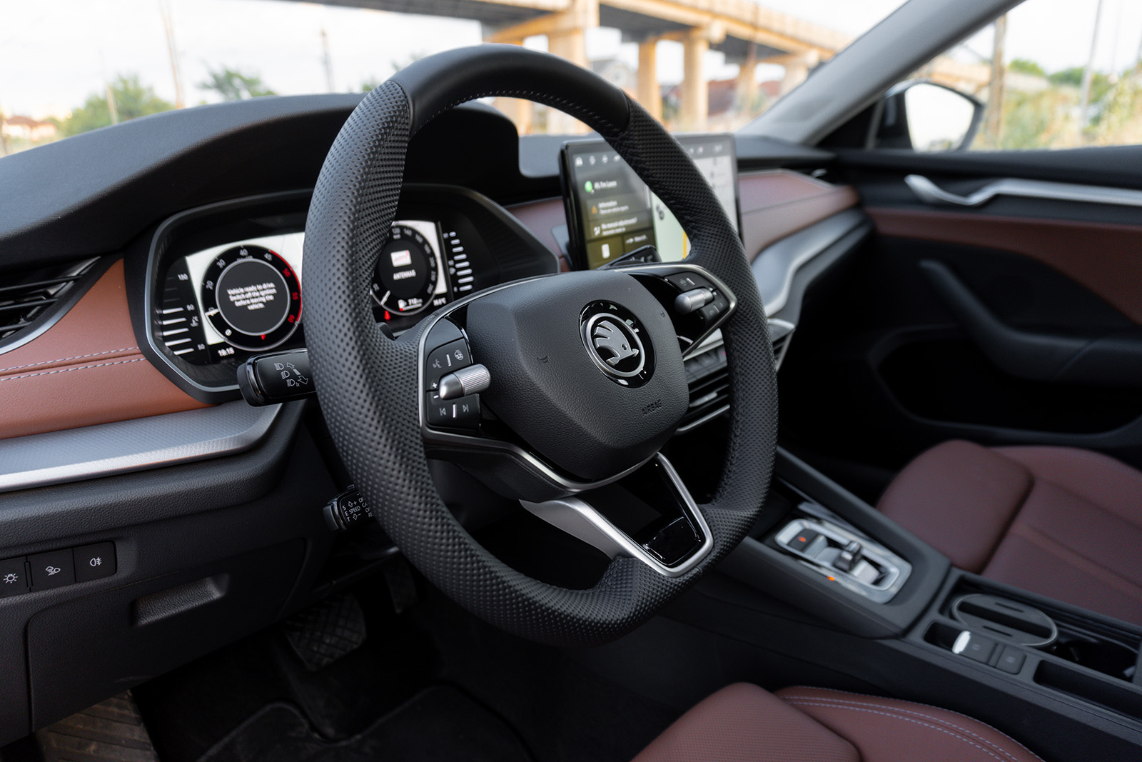 Сега стандардно сите верзии се опремени со дигитална инструмент табла од 10-инчи, додека стандардниот централен инфозабавен екран е исто така со големина од 10-инчи. Поголемиот 13-инчен екран е како дополнителна опција и добива неколку плус опции во споредба со стандардниот – а пофалба заслужува и графиката која е перфектна. Дополнително, на гласовниот асистент „Laura“ во блиска иднина ќе и помага и вештачката интелигенција – односно ChatGPT. Штета е што Octavia не ги доби успешните контроли за Smart Dials како новите Superb и Kodiaq, па буквално сè се контролира преку екранот на допир, вклучително и климата, но веројатно не може да се очекува такво нешто како дел од освежување. Промена која е погодна за корисниците е проширувањето на пристапот без клуч, кој сега може автоматски да го отклучи и заклучи автомобилот штом возачот со клучот во џебот се приближи или, обратно, се оддалечи на 1,5 метри од автомобилот.
