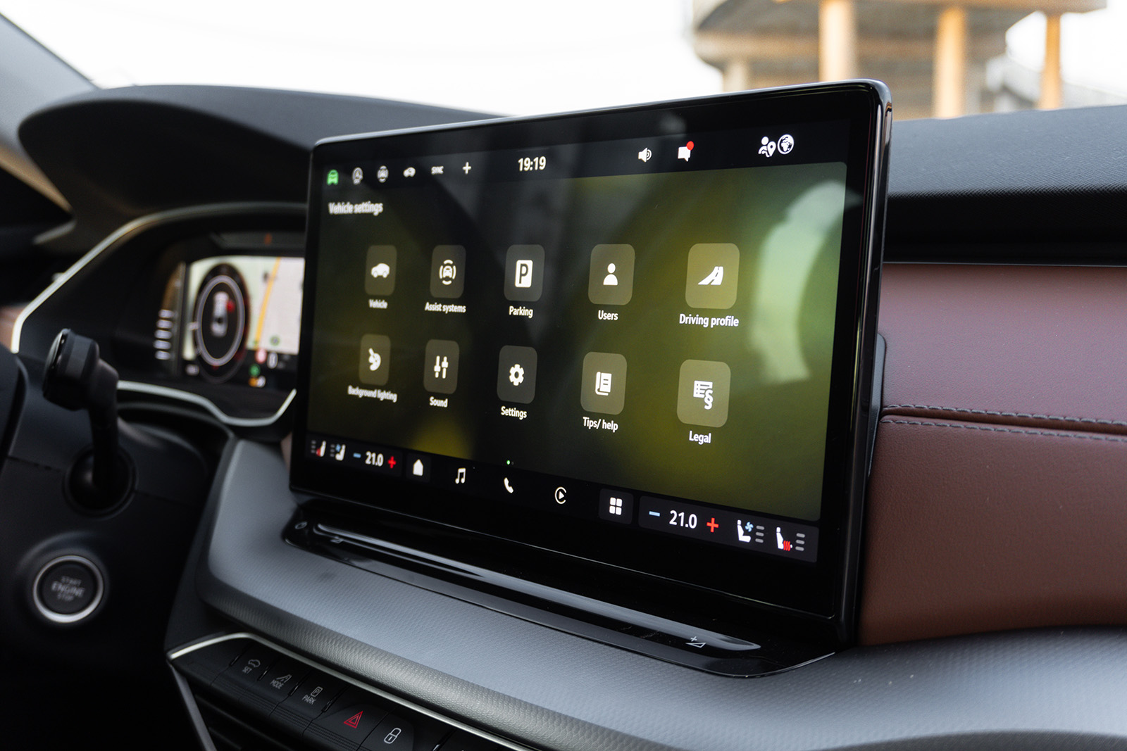 Не очекувајте драстични промени и во внатрешноста. Воланот со две краци е сè уште присутен, а како опција останува воланот со три краци (како на тестираниот примерок). Се уште се зачувани истите форми на кокпитот, само голем број на материјали сега се сменети. Освежувањето доаѓа главно во форма на замена на сјајниот хром со мат финиш – и ова е многу добра промена, мат финишот не рефлектира толку многу сончева светлина и исто така изгледа значително попремиум. Пофалба заслужуваат и сите други материјали во кабината бидејќи се со одличен квалитет и одлична завршна обработка, а сето ова ја прави кабината да изгледа значително полуксузна. Особено во комбинација со ваков Cognac кожен ентериер.