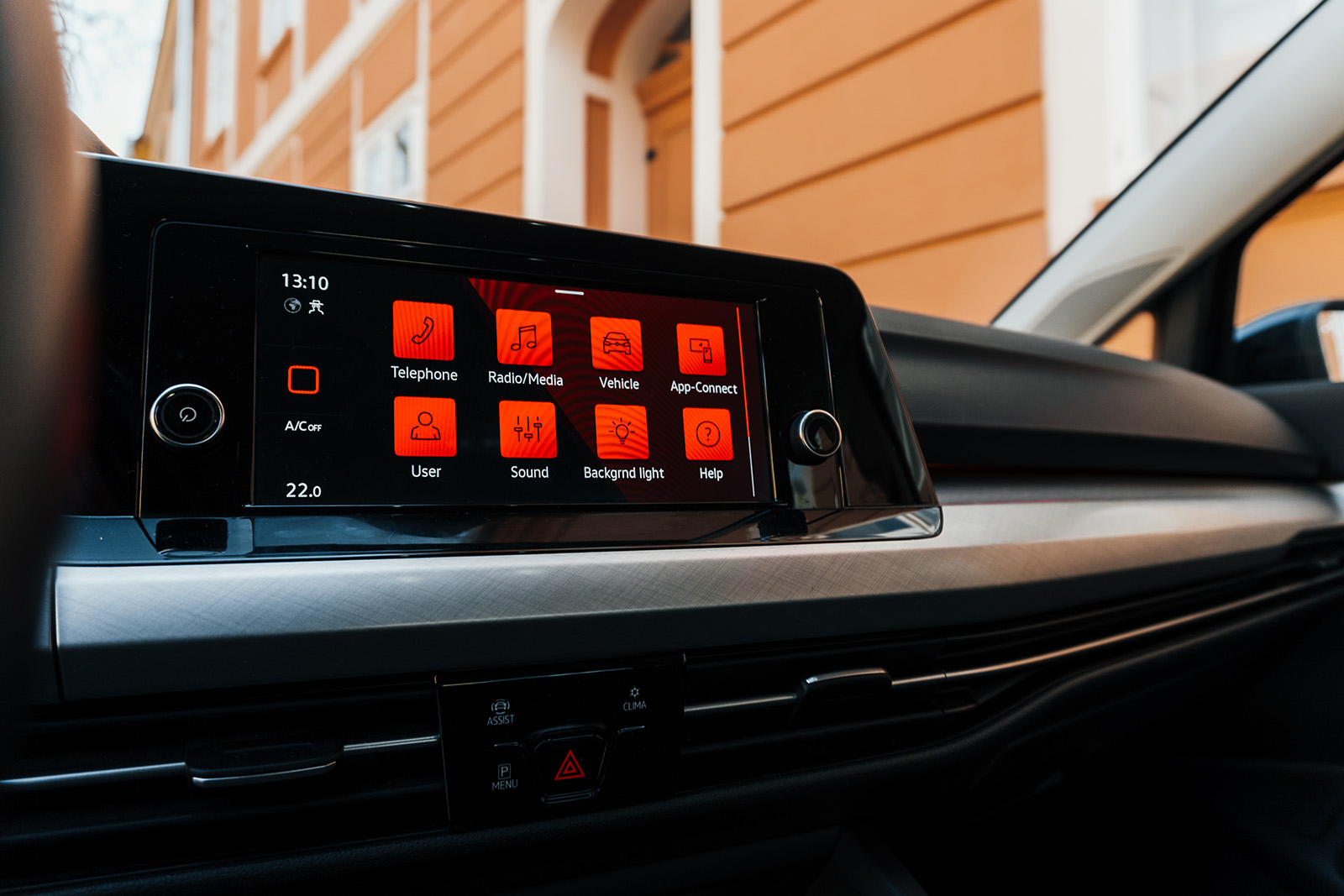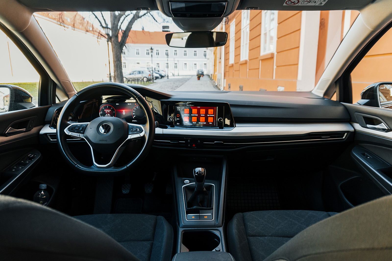 Можеби надворешниот изглед на новиот Golf не го возбудува окото и намерно потсетува на неговите предци, но неговата кабина тргна по еден друг пат. Помина времето кога во внатрешноста имаше физичко копче за секоја функција. Екраните и гласовната контрола се модерни и поекономични од претходните решенија, но не толку практични за користење. Новиот MIB3 контролен центар на VW групацијата има за цел да го направи автомобилот подигитален и помодерен. Целата кабина е со минималистички дизајн, класични копчиња скоро и да нема, а главниот збор го имаат токму екраните.