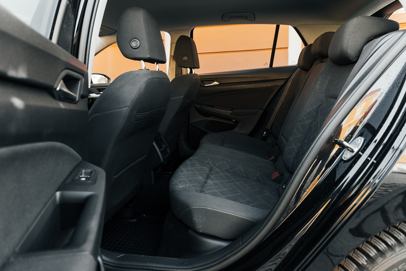 Во однос на просторот, новиот Golf има скоро исто простор како и неговиот претходник. На задните седишта можат удобно да се сместат двајца патници со просечна висина и да имаат доволно простор и за нозете и за главата. Трет патник може да се смести „на стискање“, но само за некои кратки релации. Патниците тука добиваат и свои отвори за клима уредот, како и USB-C приклучоци.