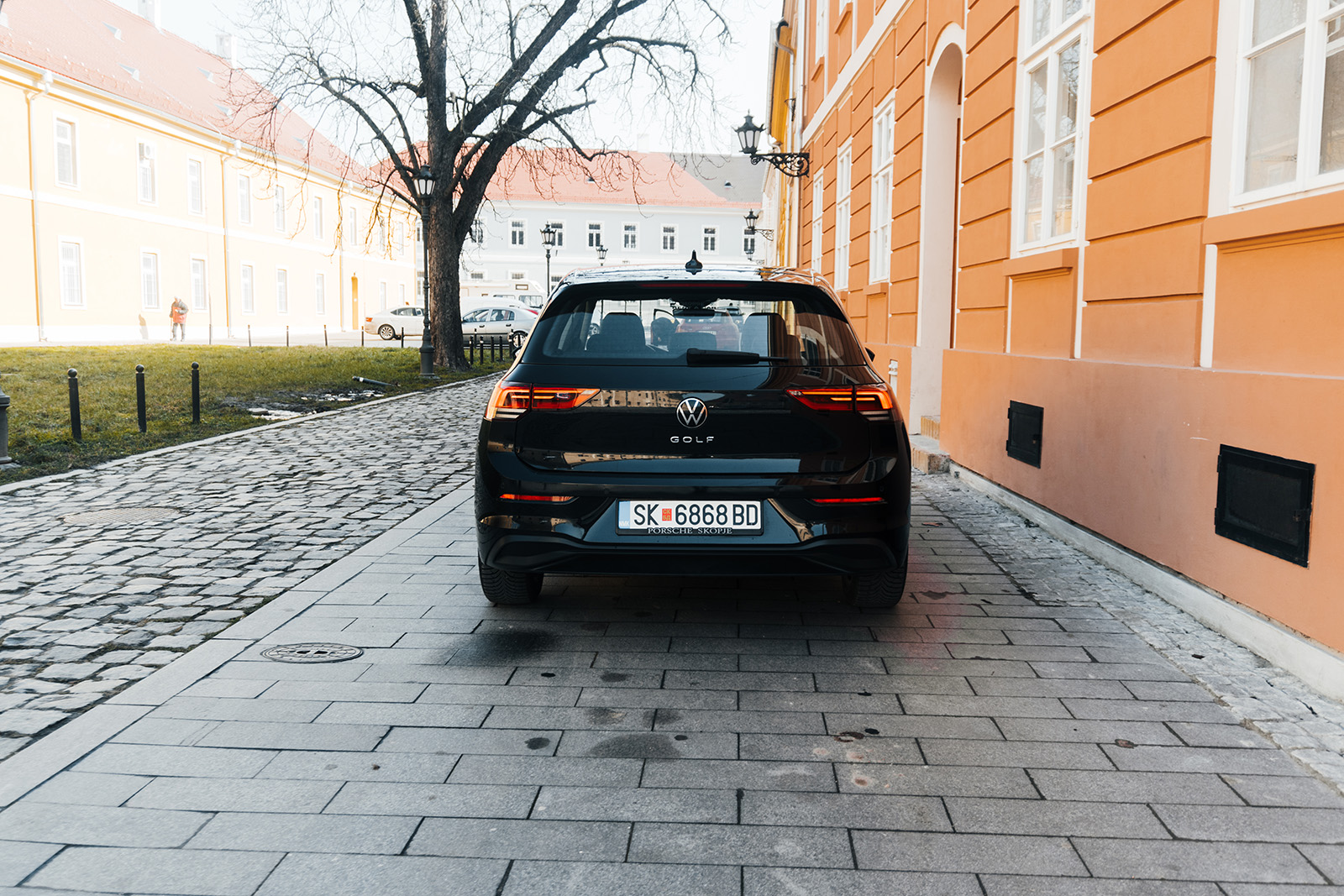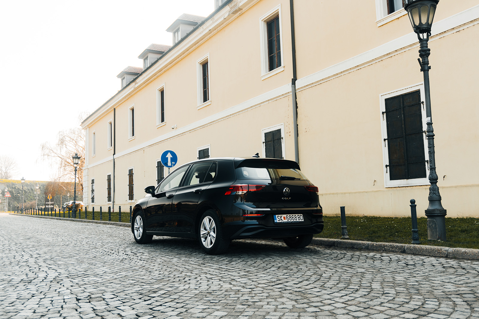 Од сите други агли, тоа е повеќе или помалку стариот добар Golf што го знаеме од порано. Страничната силуета е непогрешлива благодарение на иконскиот и широк Ц-столб. Во основното Life ниво на опременост, стандардно се добиваат овие 16-инчни бандажи кои не изгледаат лошо, но еден број поголеми бандажи дефинитвно ја менуваат цела слика за автомобилот. А оние кои сакаат уште поголеми, опционално се достапни и 18-инчи бандажи. Задниот дел доби една убава еволуција од претходната генерација и токму овој дел мене ми се допаѓа највеќе. Светлата и тука се со LED технологија, а како и предните, така и овие се во стандардната верзија – моделите со IQ.Light светла имаат комплетно различна графика. Ознаката на моделот сега е преместена под амблемот на брендот, по примерот на другите модели во понудата на Volkswagen. Долниот дел од браникот добива украсни елементи, кои кај повисоките нивоа на опременост се хромирани и всушност се имитација за издувот…Вистинските цевки за издувот се скриени под браникот.
